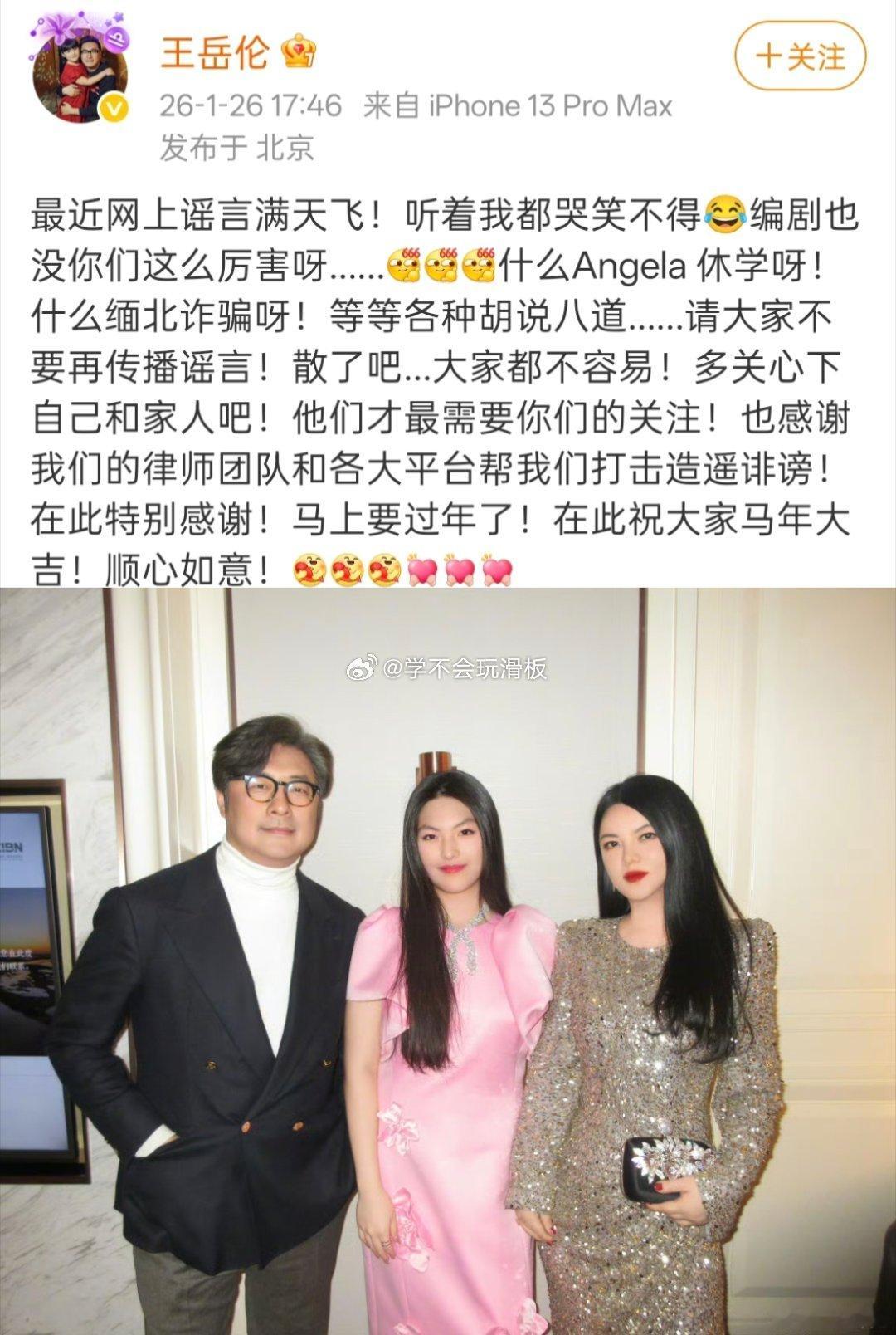 王岳伦让大家不要传播谣言 王岳伦发文帮李湘辟谣,说编剧都没有你们那么厉害,女儿休学,李湘的传闻,都是胡说八道的,请大家不要再传播谣言了,多关注自己和家人吧,他们才最需要你们的关注。而在李湘的瓜出来之后,李湘也曾上线观察这件事情的走向,她还是挺怕的呦