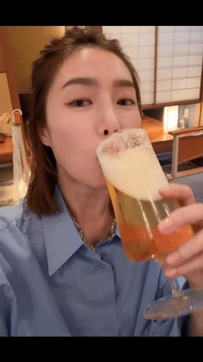 刘亦菲喝醉酒微醺的状态被拍到,脸上已经泛起了红晕,被拍到后眼神微怒