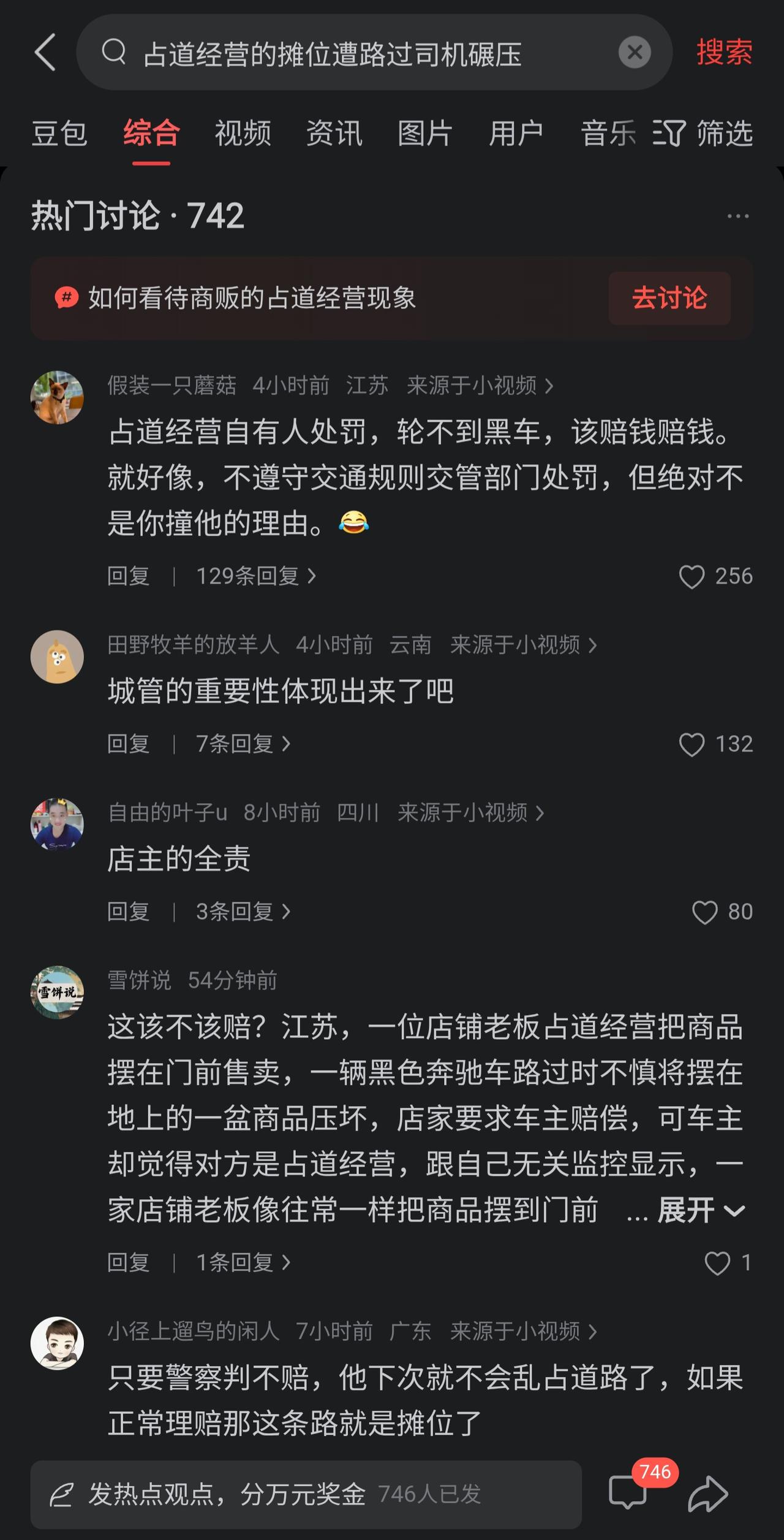 刚刷到一个视频,摊位老板占道经营,一个小轿车压到了摊位上的货物,引起了网友们的讨论,汽车司机该不该赔偿摊主钱呢? 后来一想,压住货物的汽车是不是也可能造成损害,于是抱着疑问的态度问了问DeepSeek ,没想到DeepSeek给出了这样的回答。 以下内容来自DeepSeek,不代表作者观点: 占道经营有风险,出事自己要担责;司机守法规范开,无错不用慌。 大家觉得DeepSeek给出的答案合理吗?
