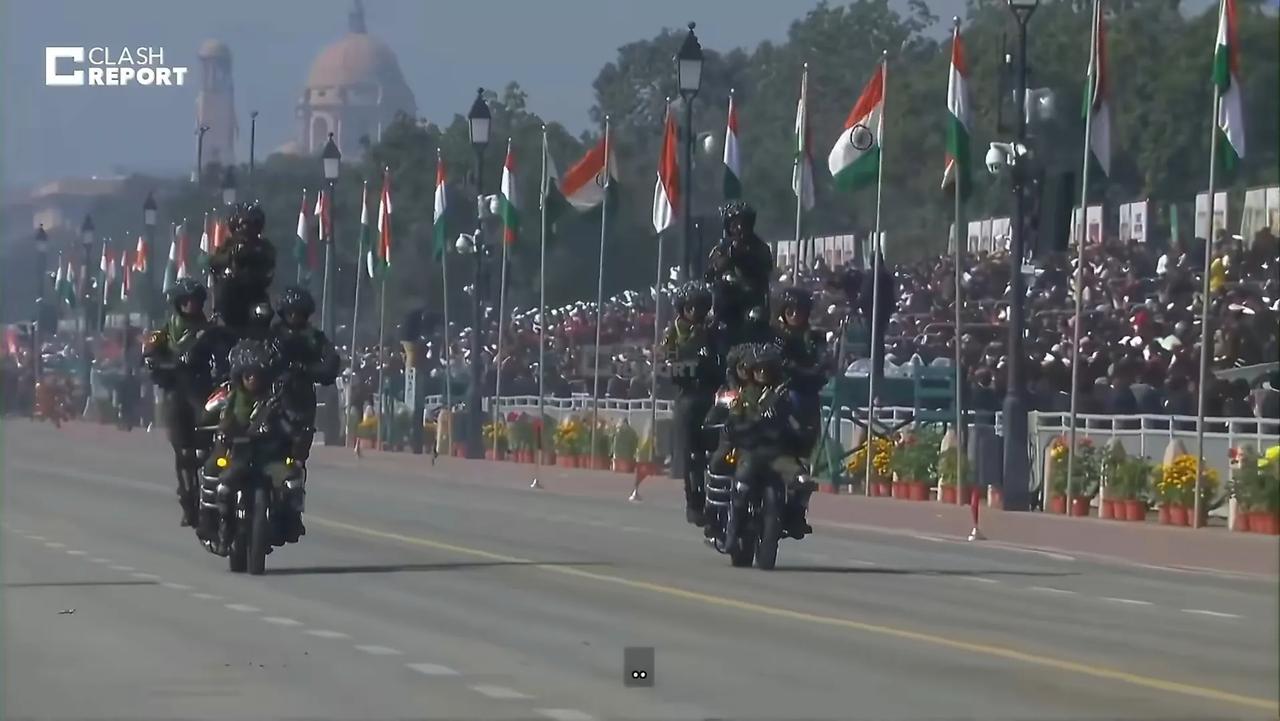 印度每年举行的共和国日阅兵,能让人记住的武器装备不多,但是摩托车杂耍绝对让人记忆深刻。今年印度举行的共和国日阅兵,摩托车杂耍和往年有很大区别,那就是女兵比例大增,甚至超过了男兵。估计印度是觉得大家看男兵摩托车杂耍看腻了,就换成女兵玩摩托车杂耍,增添点儿新鲜感。