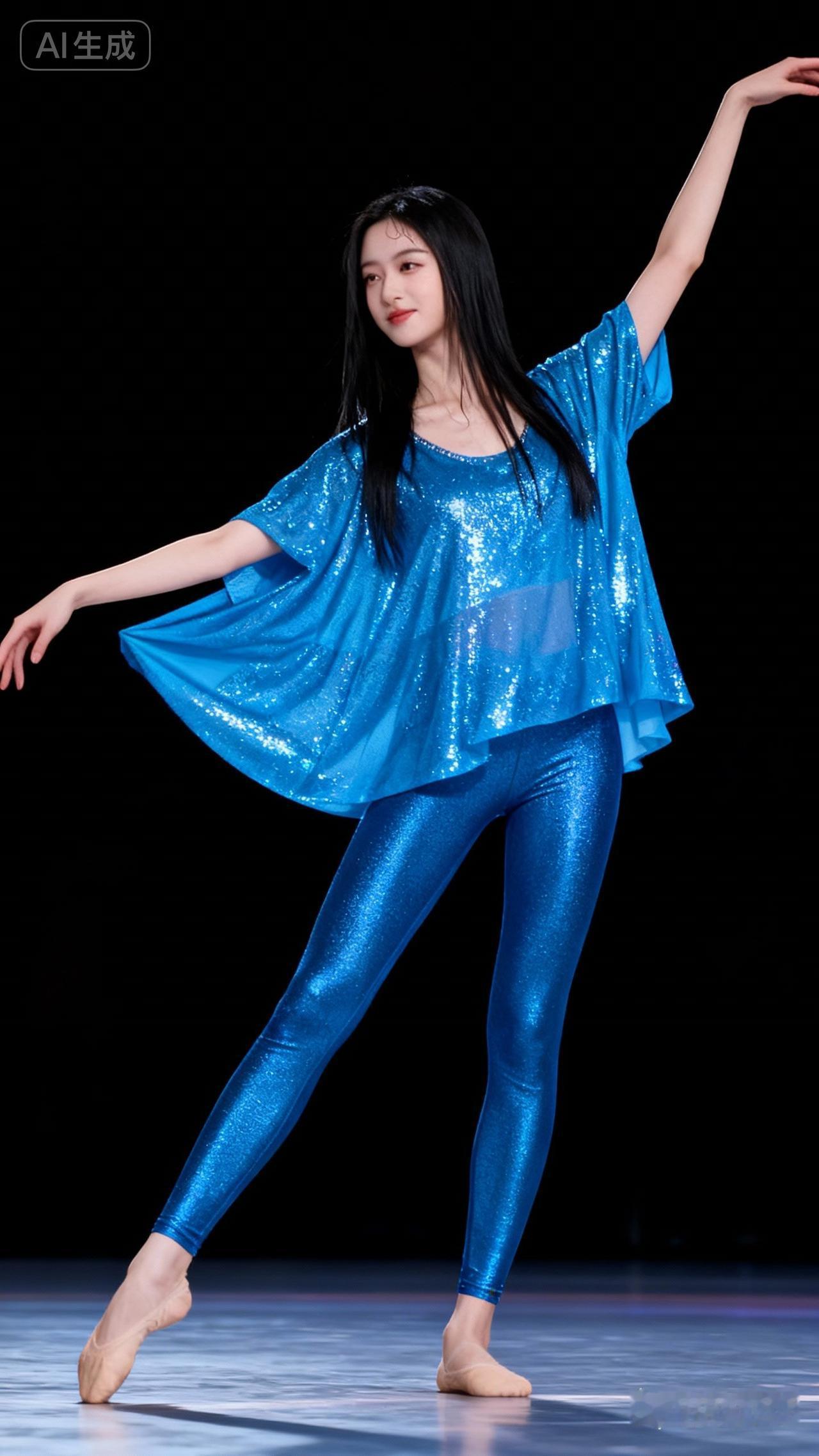 在绿意盎然的森林中,黑衣少女优雅地张开双手,仿佛拥抱自然。