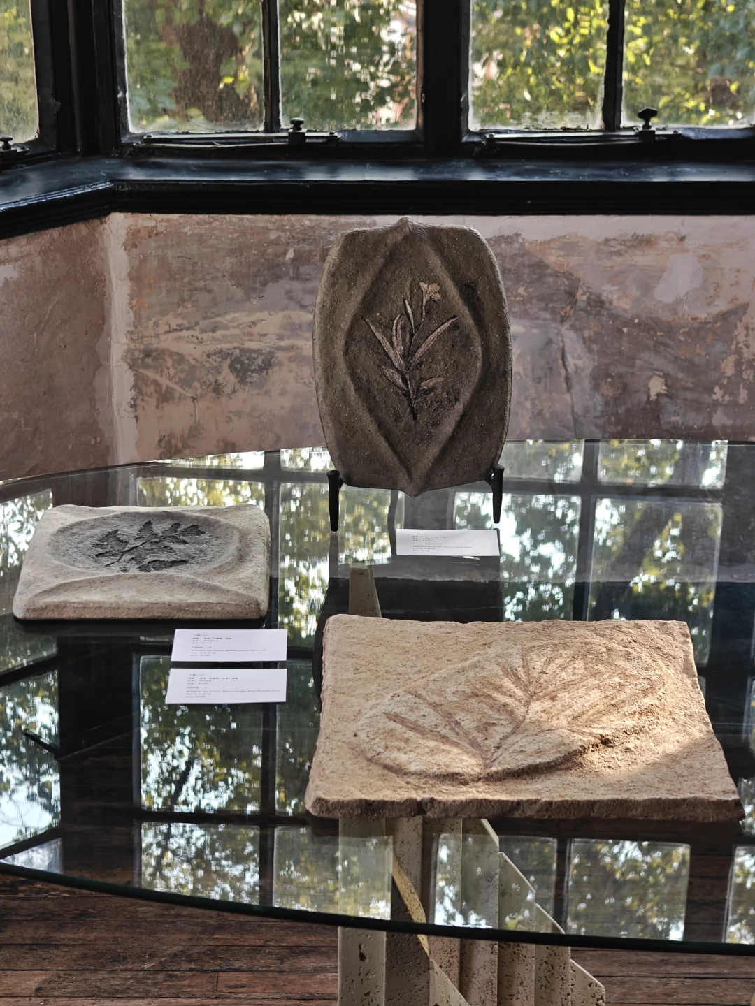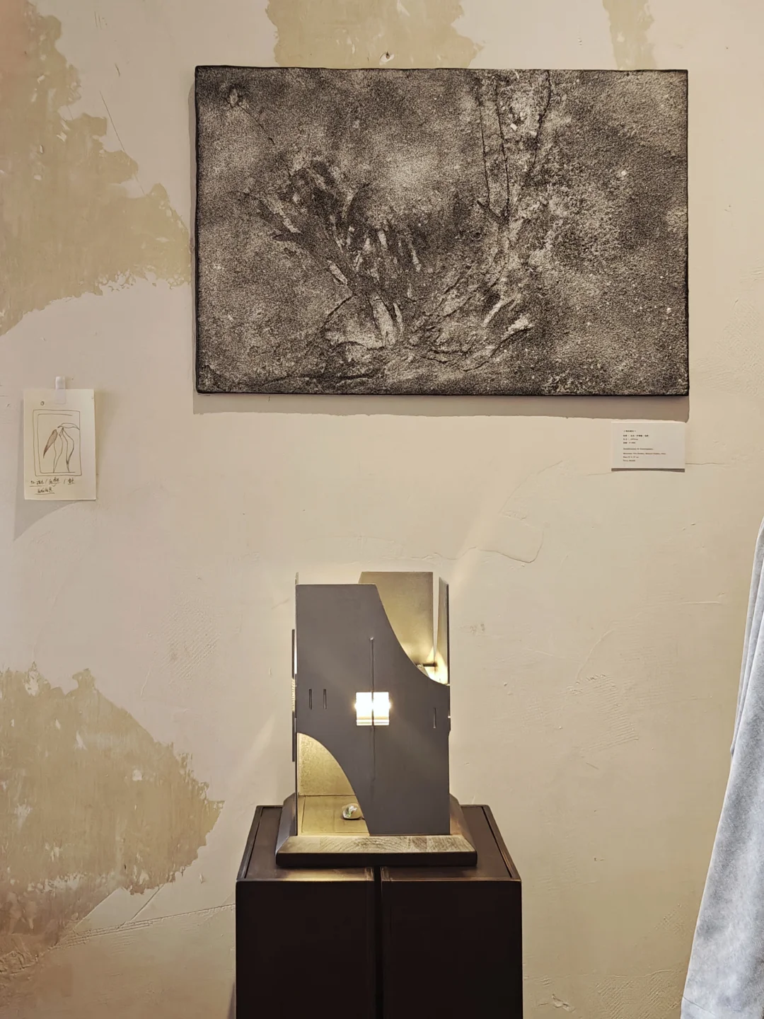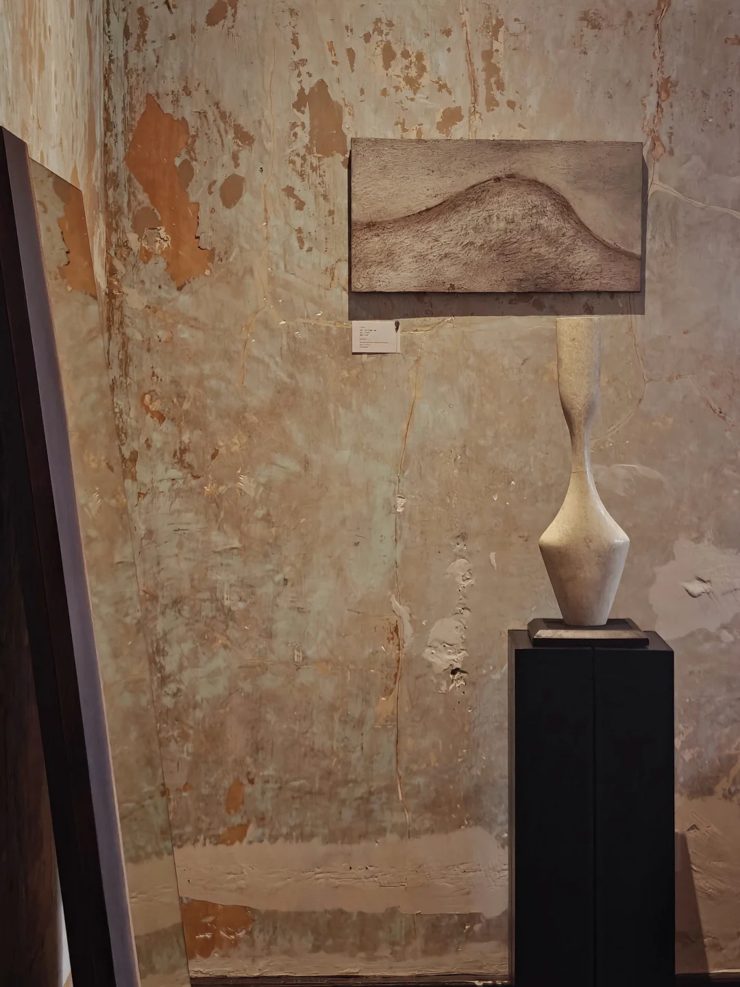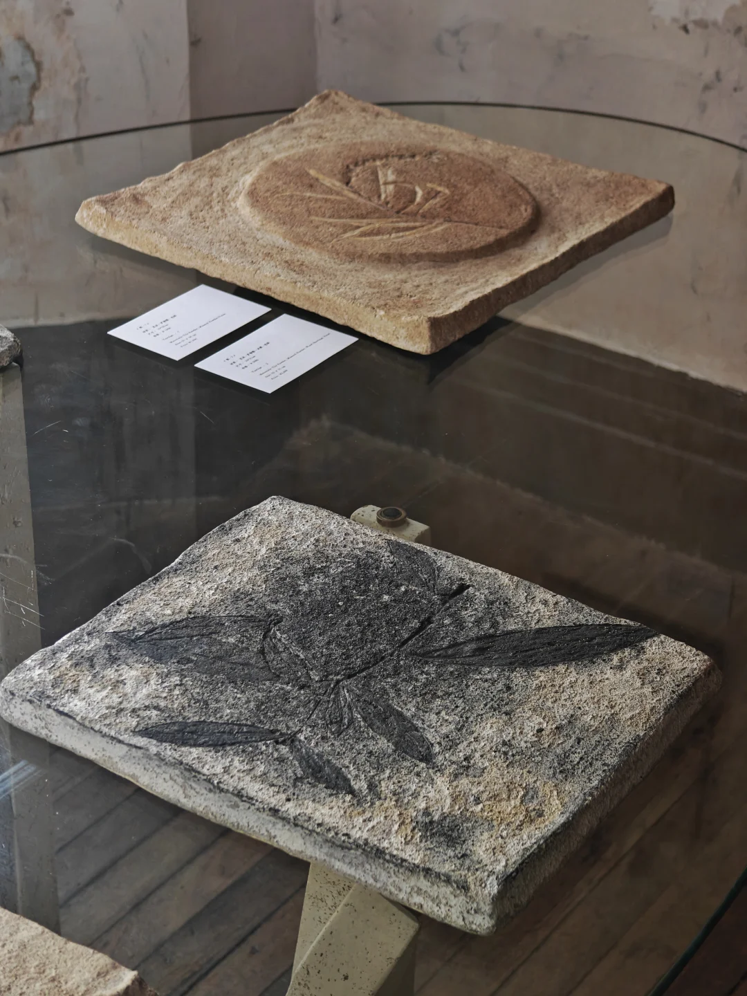 🌿她的灵感源于福州平潭的海岛故乡记忆,外婆家的石头厝、花岗岩火山岩、粗瓦灰和细瓦灰、空气中的盐粒、被海风侵蚀的岩石、肆意生长的野生植物,这些时光痕迹成为创作的质感基底。粗糙质感瓦灰、矿物为基底,草木以清晰痕迹或灰烬般的朦胧形态介入作品,呈现时光沉淀后的真实与温润。