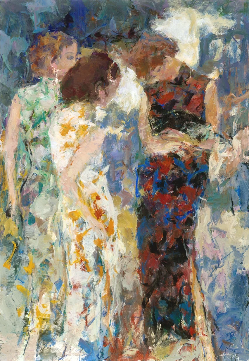 出身苏州贝氏名门的贝家骧,自带深厚的文化基因。他先后就读于上海师范大学艺术系、中央美术学院研修班,早年作品《昨天、今天、明天》便斩获全国美展奖项,载入艺术史册;旅居澳洲三十余年的经历,又让他得以深入研习西方绘画流派诸如后印象派、野兽派、表现主义、抽象主义的精髓。这样的履历,让他的中西融合创作绝非表面拼接,而是扎根东方审美、吸纳西方技法的深度碰撞。
