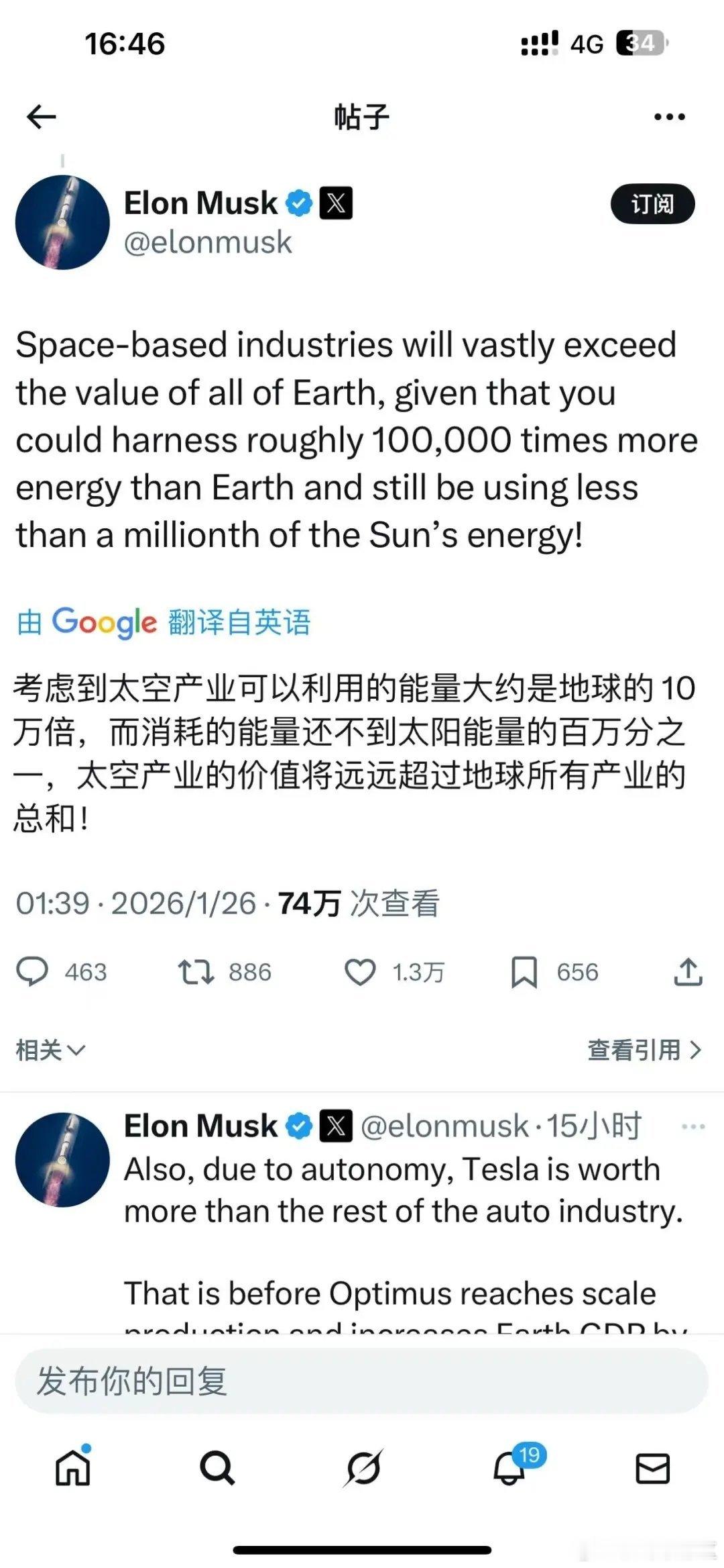 马斯克最新预言:由于太空能源总量约为地球的10万倍,天基产业的经济价值最终将超越地球经济总价值