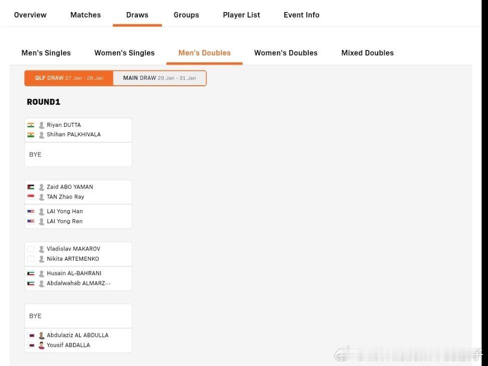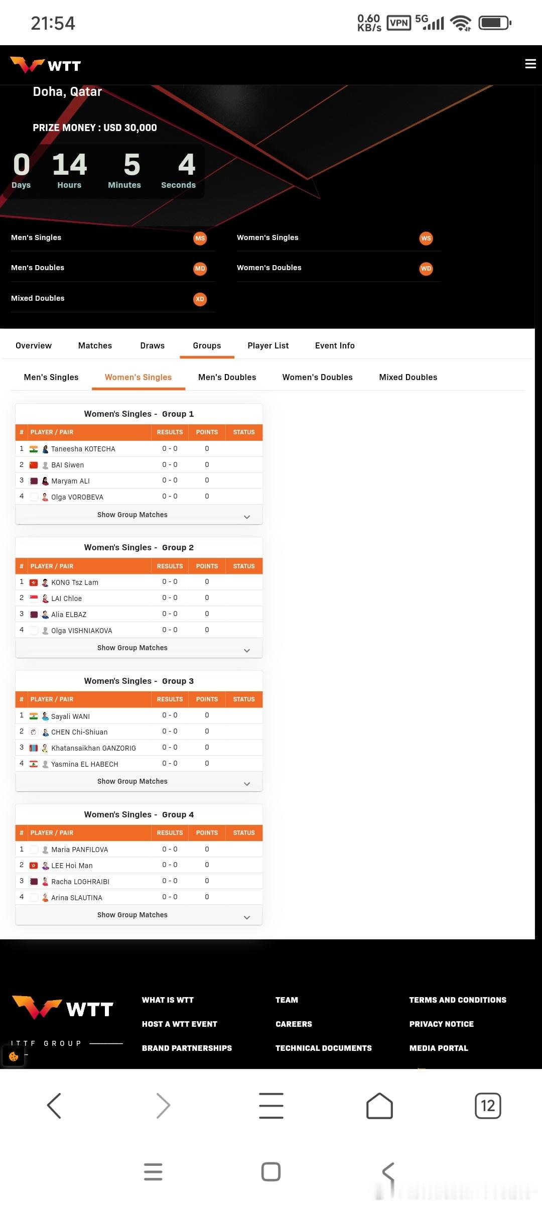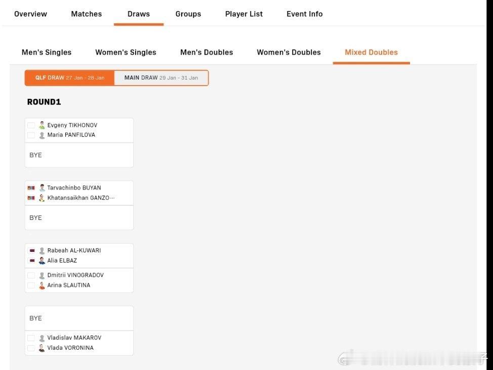 2026WTT多哈支线赛单打小组赛分组以及双打淘汰赛签表:中国队只有白思文一人参赛1组:白思文🇨🇳、科特查🇮🇳、玛利亚姆🇶🇦、沃罗贝娃🇷🇺(AIN)