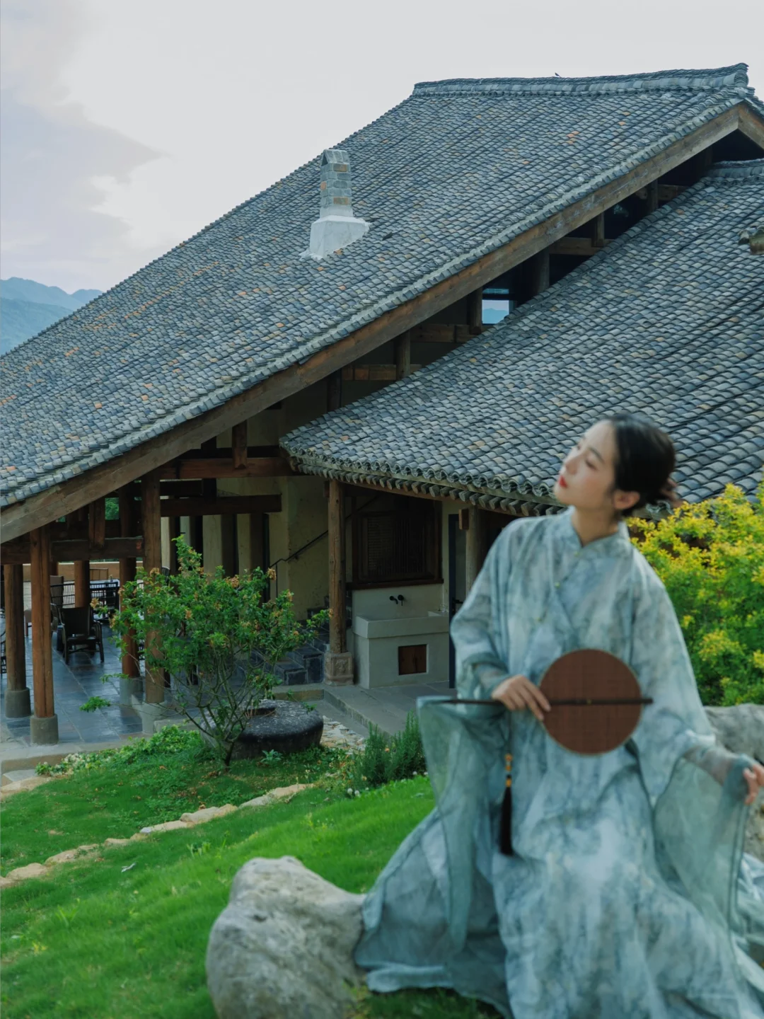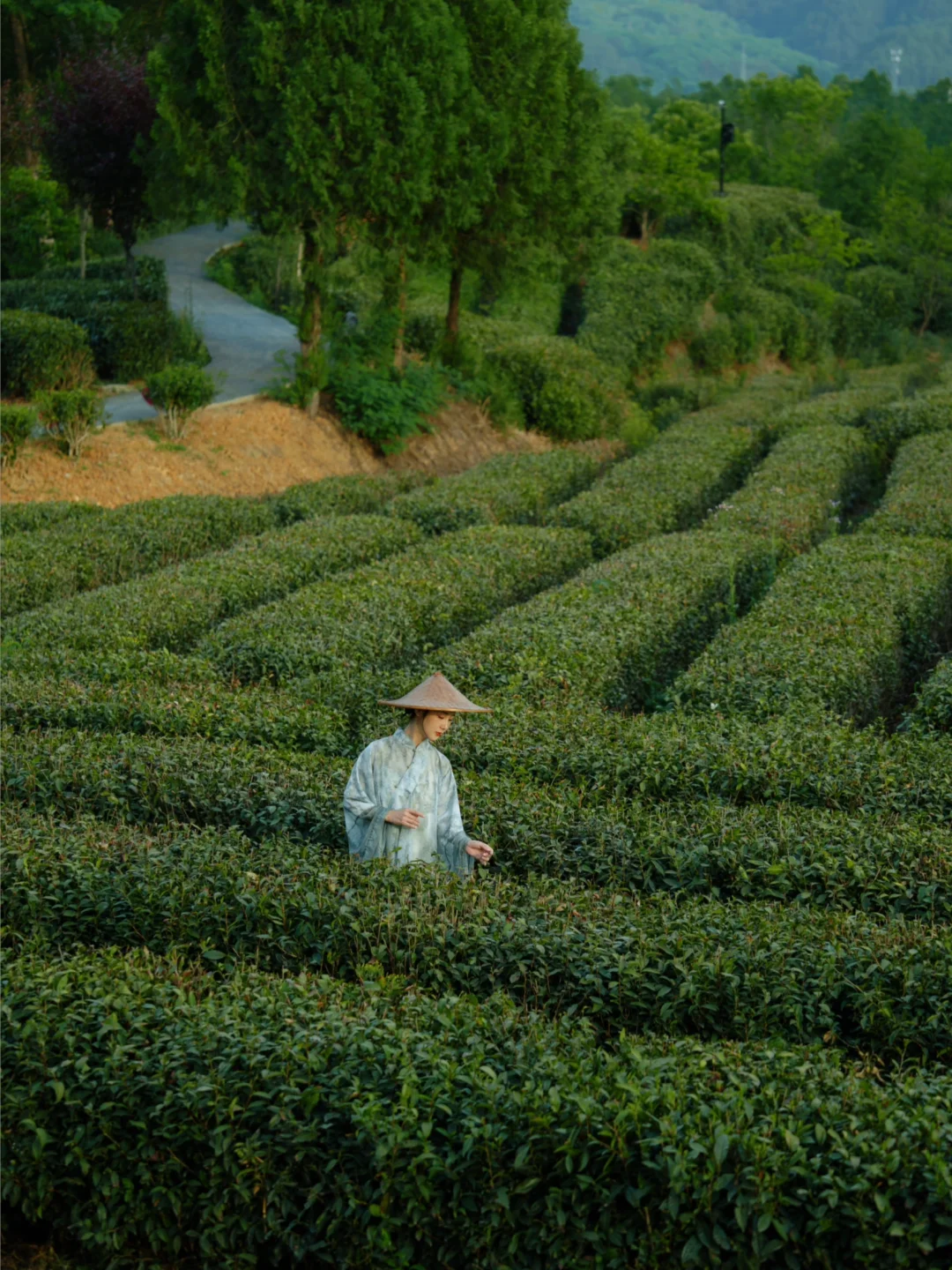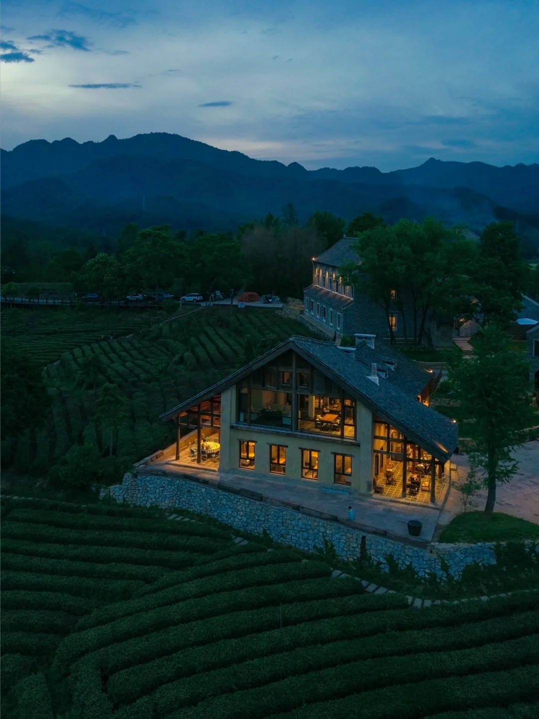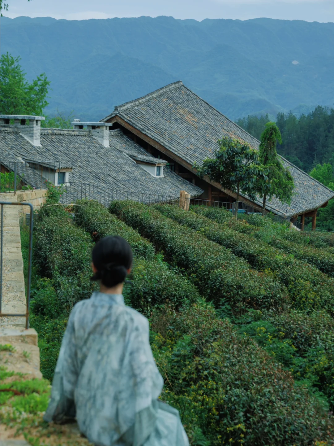 民宿就建在千亩茶园里,茶园不论晴天下雨都超级出片。可惜过了采春茶的时间,不然还可以体验采摘。最近民宿栽种的绣球花开了也很美。