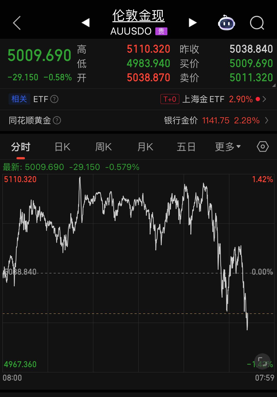 黄金与白银大幅回调。 1月27日,截至发稿,现货白银跌超2%,报约102美元/盎司,此前一度上涨14%。 现货黄金跌0.58%,报约5009美元/盎司,此前一度上涨2.5%,盘中一度跌破5000美元关口。 这么大幅度的多空博弈,一般人整不了,也不建议火中取栗。