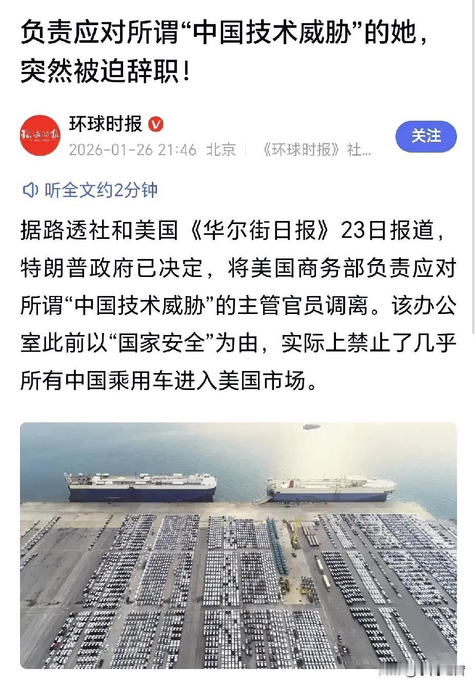 美国政坛又出大瓜了!那个天天喊着“中国技术威胁”、一手搞出中国乘用车禁入美国禁令的女官员莉兹·坎农,突然被特朗普政府“劝退”了!说是主动辞职,明眼人都看得出来——要么自己走,要么被发配到犄角旮旯的闲职,这哪是辞职,分明是被扫地出门啊! 先给不了解情况的朋友科普下这位坎农女士:她是美国商务部一个叫ICTS办公室的头头,这个办公室2022年才成立,说白了就是专门盯着中国技术的“找茬部门”。拜登当总统的时候,她可是红人,领着团队搞出了个奇葩规定——中国产的联网汽车不能进美国,理由是“数据会泄露,危害国家安全”。这话听着是不是特耳熟?美国打压中国企业,永远就这一套说辞,跟祥林嫂似的念叨个没完。 但坎农千算万算没算到,特朗普会卷土重来。这位地产大亨上台后,画风突变,不仅不接着搞全面封锁,反而撤回了中国无人机的限制,还允许英伟达给中国卖H200芯片。这可把坎农急坏了,她还想接着搞事,又是要限制中国路由器,又是要禁中国重卡,结果提案全被白宫压下来了。你想啊,特朗普正琢磨着4月份访华谈大生意呢,哪能让这个“前朝余孽”坏了自己的好事? 不过话说回来,大家可别觉得特朗普这是良心发现了。他可不是要和中国做朋友,只是换了个更精明的打法:以前是全面封锁,现在是“精准打击+选择性合作”。核心技术比如高端芯片,该卡还是卡;但像汽车、无人机这些,美国自己离不开或者能赚钱的领域,就暂时松松手。这种“胡萝卜加大棒”的套路,咱们可得心里有数。 再说说坎农这个人,其实她就是美国政坛的一颗棋子。拜登在任时,需要她这样的强硬派来打压中国,巩固自己的政治基本盘;特朗普上台后,风向变了,她没用了,自然就被抛弃了。想想也挺讽刺,她忙活了好几年,搞出来的禁令要么被撤回,要么被搁置,最后自己还丢了工作,堪称“职场悲剧第一人”。 最后我想说,美国这种把经贸科技问题政治化、工具化的做法,终究是走不通的。现在全球经济你中有我、我中有你,靠打压别人来维持自己的霸权,根本不现实。中国企业也不是吓大的,你越打压,咱们越要搞自主创新,现在芯片、汽车这些领域不都慢慢起来了吗?