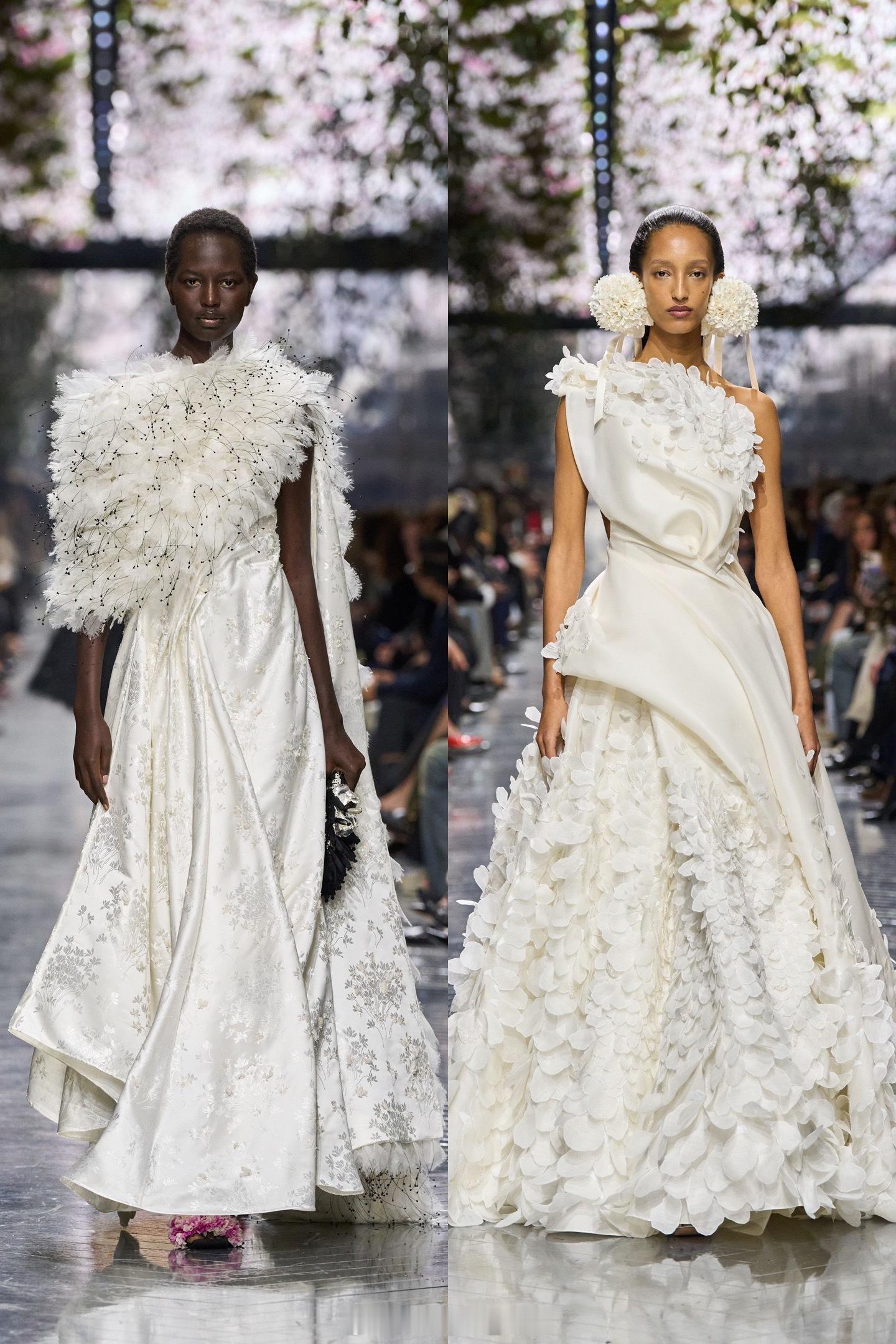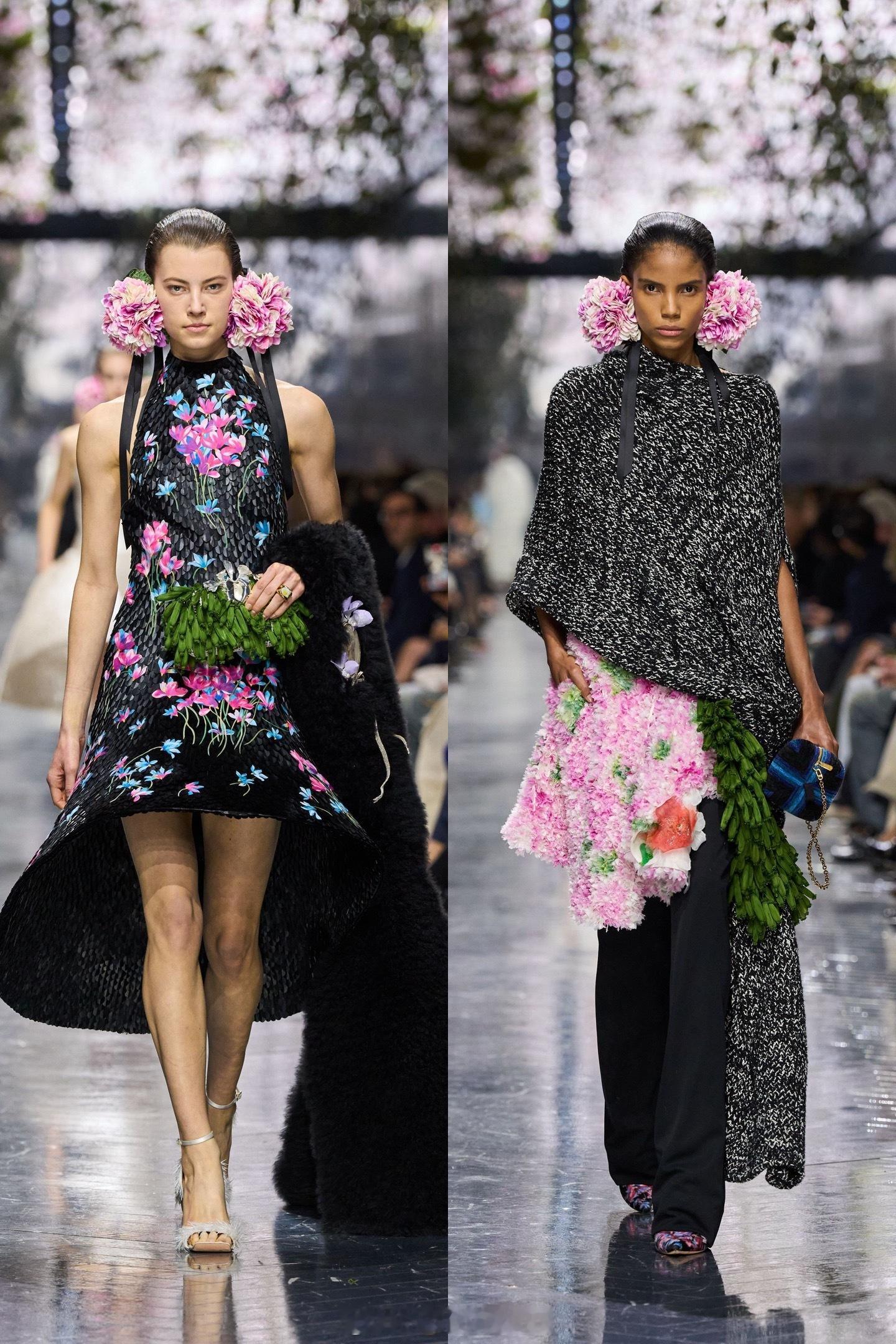 Dior高订花海秀场 Jonathan Anderson将其打造的迪奥高订首秀构筑于罗丹美术馆的「珍奇柜」中,整个空间俨然一座盛放的自然研究室 🌸花朵,成为贯穿始终的灵感与形态语言:从John Galliano赠予的那束仙客来化作的诗意信物,到工匠以真丝精妙裁剪的写实花朵;从鞋履上轻颤的真丝花瓣装饰,到耳畔摇曳的漆面黄铜和织物雕花,一场静默而盛大的「花海」在身体上绽放。本季最打动我的,是Jonathan让花朵脱离了单纯的唯美象征,成为承载记忆、工艺与转化的容器。我尤其喜欢那件缀满真丝仙客来的礼裙:每一片花瓣都由匠人手工裁制、拼贴,仿佛Galliano那束赠礼在当下时空的蔓延与盛放。而那些以精密刺绣微缩重现的立体花丛,与十八世纪古董面料上的古典纹样遥相呼应,恰如一场跨越百年的园艺对话。我看到的不仅是高订华服,更是一整个华丽的工艺世界,正通过这些绽放于衣裙之上的花朵,获得呼吸、延续与崭新的生命形态,实在太美了~