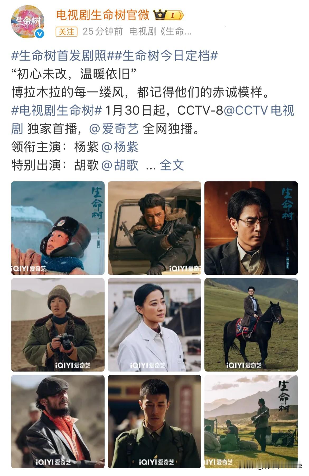1月27日,杨紫胡歌《生命树》官宣定档! 看片方发的杨紫剧照,也太敷衍了点,作为