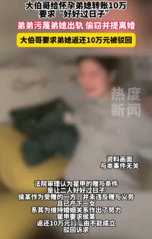 陕西铜川,一怀孕女子被丈夫闹离婚,丈夫的哥哥给她转了10万元劝和,让她拿钱好好过日子。谁知女子收了钱后,丈夫却怀疑女子婚内出轨,还把女子搞得被公司辞退。丈夫的哥哥眼见弟弟和弟媳的婚姻维持不下去了,于是将女子告上法院,以不当得利为由,要求其返还10万元。可法院的判决让女子丈夫的哥哥感到意外。   当事人侯某正怀着身孕,婚姻却突生裂痕,丈夫瞿某某执意要和她闹离婚。   瞿某某的哥哥瞿某看着弟媳怀孕在身,又不想好好的家庭散掉,便主动给侯某转了10万元。瞿某的想法很直白,就是想用这笔钱劝和两人,让侯某拿着钱安心养胎,和弟弟好好维系这段婚姻。   侯某收下了这笔钱,本想顺着瞿某的心意挽回这段关系,没曾想矛盾反倒愈演愈烈。   瞿某某不仅没有打消离婚的念头,还凭空怀疑侯某存在婚内出轨行为。瞿某某为了发泄不满,做出了极端举动,暗中操作让侯某丢掉了工作,断了她的经济来源。   好好的劝和初衷落得这般境地,瞿某看着弟弟和弟媳的婚姻彻底走到尽头,再无挽回可能,心里也犯了嘀咕。   瞿某觉得自己拿这笔钱是为了维系两人的婚姻,如今婚姻保不住了,侯某就该把钱还回来。   随后,瞿某直接将侯某告上了法院,以不当得利为由,要求侯某返还这10万元款项。   瞿某满心以为自己的诉求会得到法院支持,可一审判决结果却让他倍感意外。   法院经过审理查明,瞿某转给侯某10万元时,明确提出了让侯某与瞿某某好好过日子的要求,这种附带明确条件的赠与,在法律上属于附义务的赠与行为。   法官认为,侯某收下钱后并无违约行为,婚姻最终破裂并非侯某单方面导致,因此侯某的行为不构成不当得利。最终,法院一审判决驳回了瞿某的全部诉讼请求。   一审败诉的结果让瞿某难以接受,他始终觉得这笔钱的目的落空,就该收回。紧接着,瞿某不服一审判决,向上级法院提起了上诉,打算继续索要这笔款项。   侯某看着瞿某这般不依不饶、誓要拿回钱的态度,积压已久的情绪彻底爆发。在二审庭审现场,侯某直接提交了关键证据,证明瞿某某在婚姻存续期间对自己实施性虐待。   这份证据不仅揭露了这段婚姻背后的阴暗面,也让案件的审理有了更清晰的导向。   二审法院结合新提交的证据和全案事实,再次对这笔10万元款项的性质作出认定。法官表示,瞿某当初转账的核心目的,就是为了让侯某与瞿某某维系婚姻关系、安稳过日子。   这笔钱本质上是维系双方婚姻关系的对价,并非没有合法依据的无偿所得,自然不属于不当得利的范畴。   从法律层面来讲,附义务的赠与并非只要目的未达成就能撤销,关键还要看受赠人是否履行了约定义务。侯某收下钱后始终没有违背好好过日子的初衷,婚姻破裂的根源在于瞿某某的怀疑与虐待行为,并非侯某违约。   瞿某或许没意识到,自己的劝和心意虽好,但一旦将款项与婚姻存续绑定,就受法律关于附义务赠与的条款约束。   侯某作为婚姻中的受害方,不仅要承受怀孕期离婚的打击、失业的困境,还要应对瞿某的诉讼,好在法律最终给出了公正的评判。   这起案件也清晰地表明,婚姻关系的维系从来不是靠一笔钱就能支撑的,而民事纠纷的处理,终究要以法律规定和客观事实为依据。   瞿某本想靠金钱挽回弟媳的婚姻,最后却因诉求缺乏足够的法律支撑接连败诉,这段纠纷也给所有人提了个醒,涉及金钱往来时,明确双方权利义务至关重要,尤其是附带条件的赠与,更要清楚背后的法律后果。   侯某凭借确凿证据维护了自己的合法权益,也让这段充满波折的婚姻纠纷,有了一个符合法理与情理的结局。法律既没有忽视瞿某的劝和初衷,更没有纵容婚姻中的过错行为,始终站在公平公正的立场,守护着各方的合法权益。