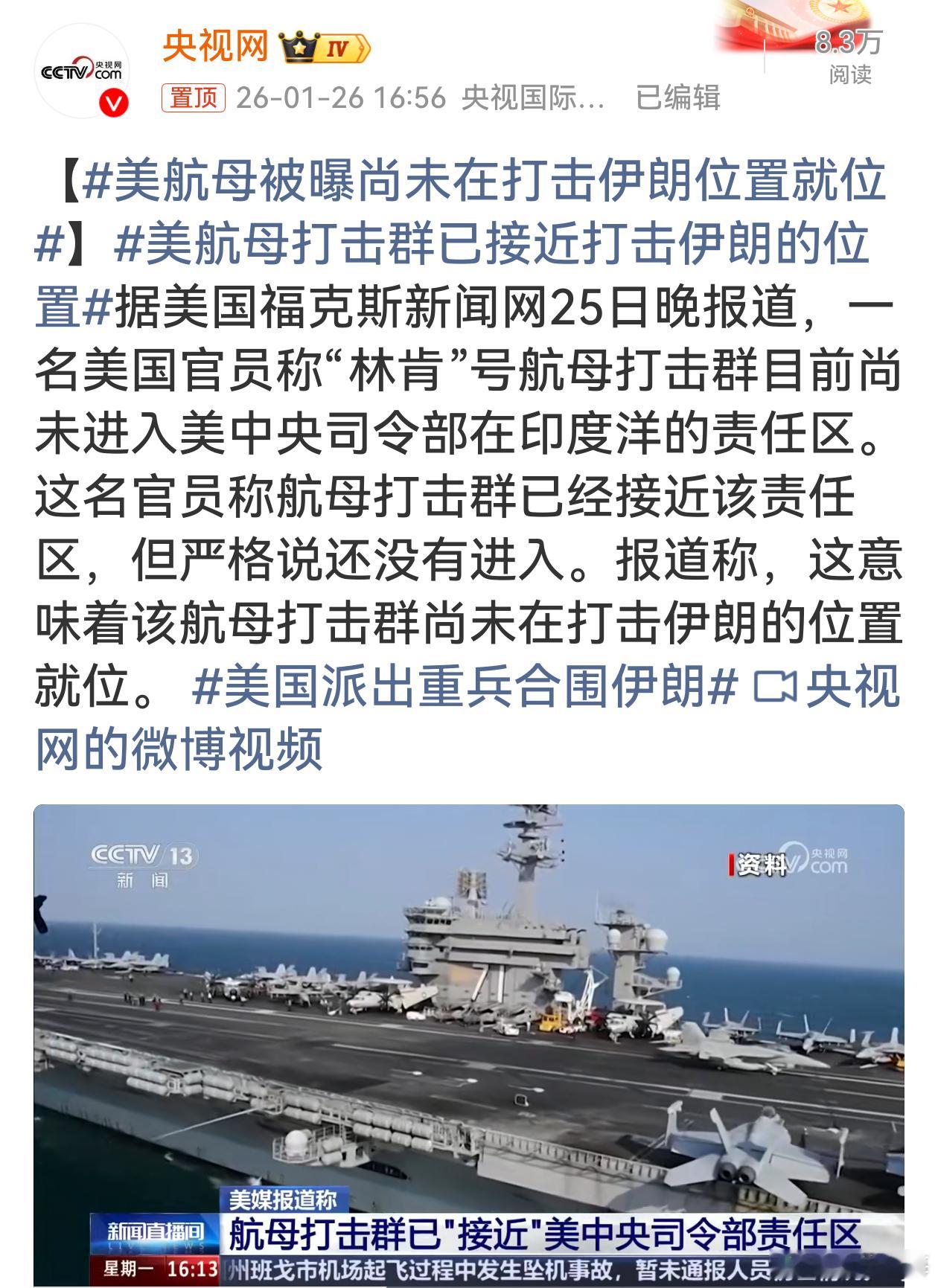 美航母被曝尚未在打击伊朗位置就位这很可能是信息战的一部分。美媒释放“林肯”号航母打击群未就位信息,一方面可对伊朗形成心理威慑,暗示打击随时可能到来;另一方面也可能是故意误导,掩盖其真实军事意图,让伊朗难以准确判断局势,在信息博弈中占据主动。