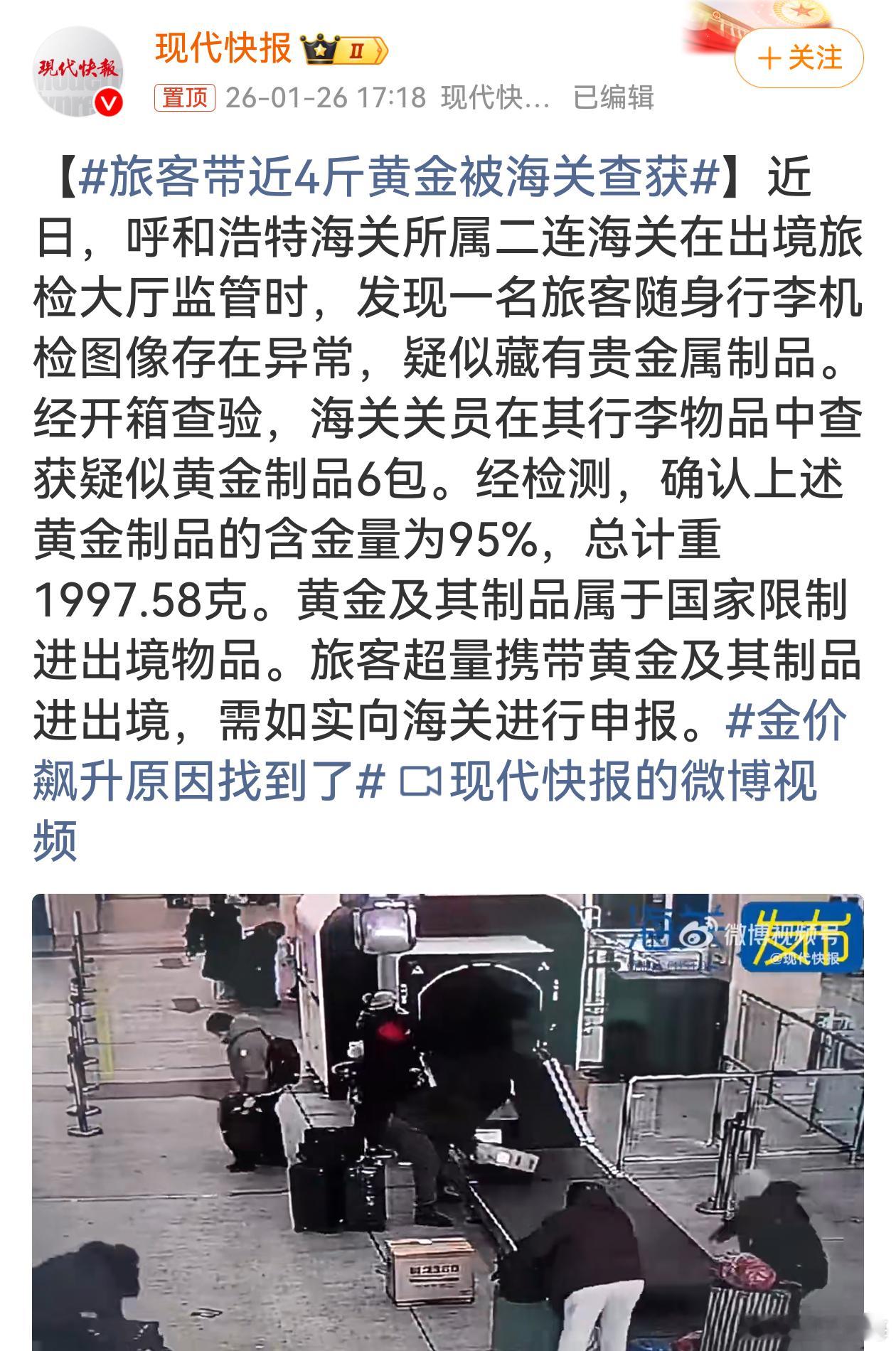 旅客带近4斤黄金被海关查获旅客带近4斤黄金被海关查获,这再次给大家敲响警钟。黄金属限制进出境物品,依规申报是基本要求。该旅客未如实申报超量黄金,不仅违反规定,也扰乱了海关监管秩序。每个人都应增强规则意识,共同维护良好的通关环境。