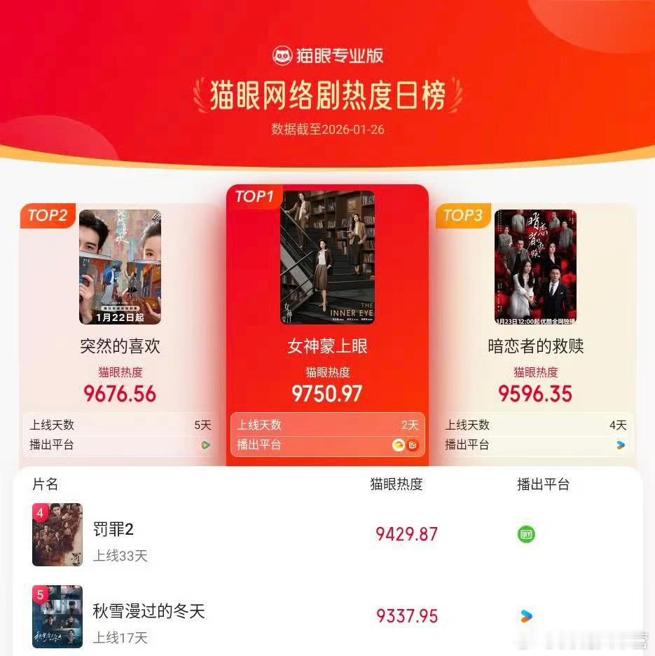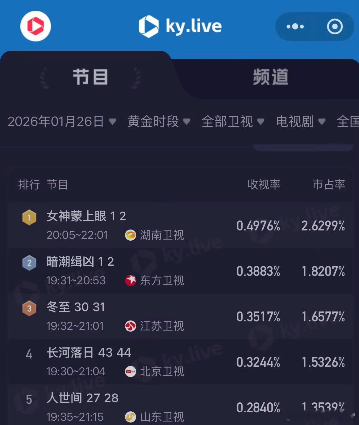 辛芷蕾新剧《女神蒙上眼》首播数据——卫视榜收视TOP1,峰值超过0.6!网络剧热度TOP1芒果TV站内点击TOP1辛芷蕾 观众缘