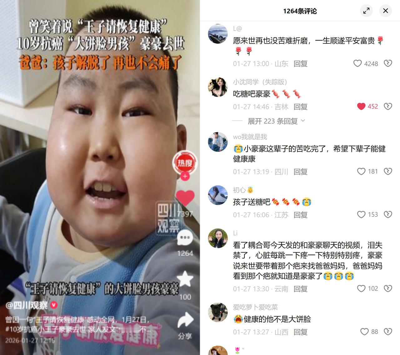 王子请恢复健康的男孩走了 4岁确诊白血病,6年里熬过几十次化疗、两次骨髓移植,豪豪总笑着举着牌子跟世界打招呼。今天家人说,他再也不用打针吃药,再也不会痛了。 这两年刷到太多成年人喊人间不值得,可豪豪在最疼的日子里,把每一次化疗的苦,都酿成了给世界的糖。大家刷屏送糖,说这辈子的苦吃完了,这并非矫情,只是我们都懂,在连大人都扛不住的苦难里,那个笑着的大饼脸男孩,藏着最珍贵的天真和坚韧。 他没说过来世带疤痕找爸妈,但大家的执念里,全是舍不得。下次看到糖,或许会想起那个小小的、乐观的身影。愿他在那边,真的是不用打针的小王子。