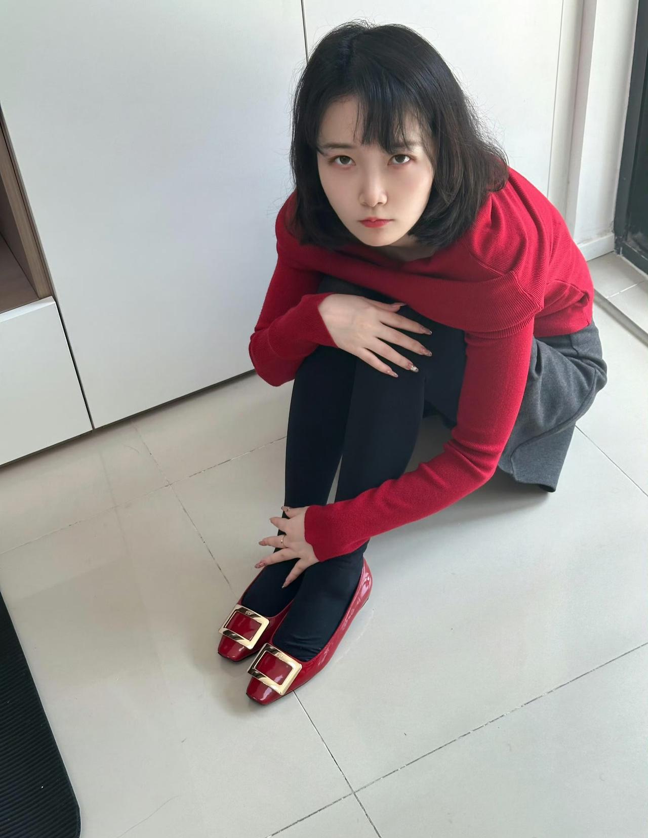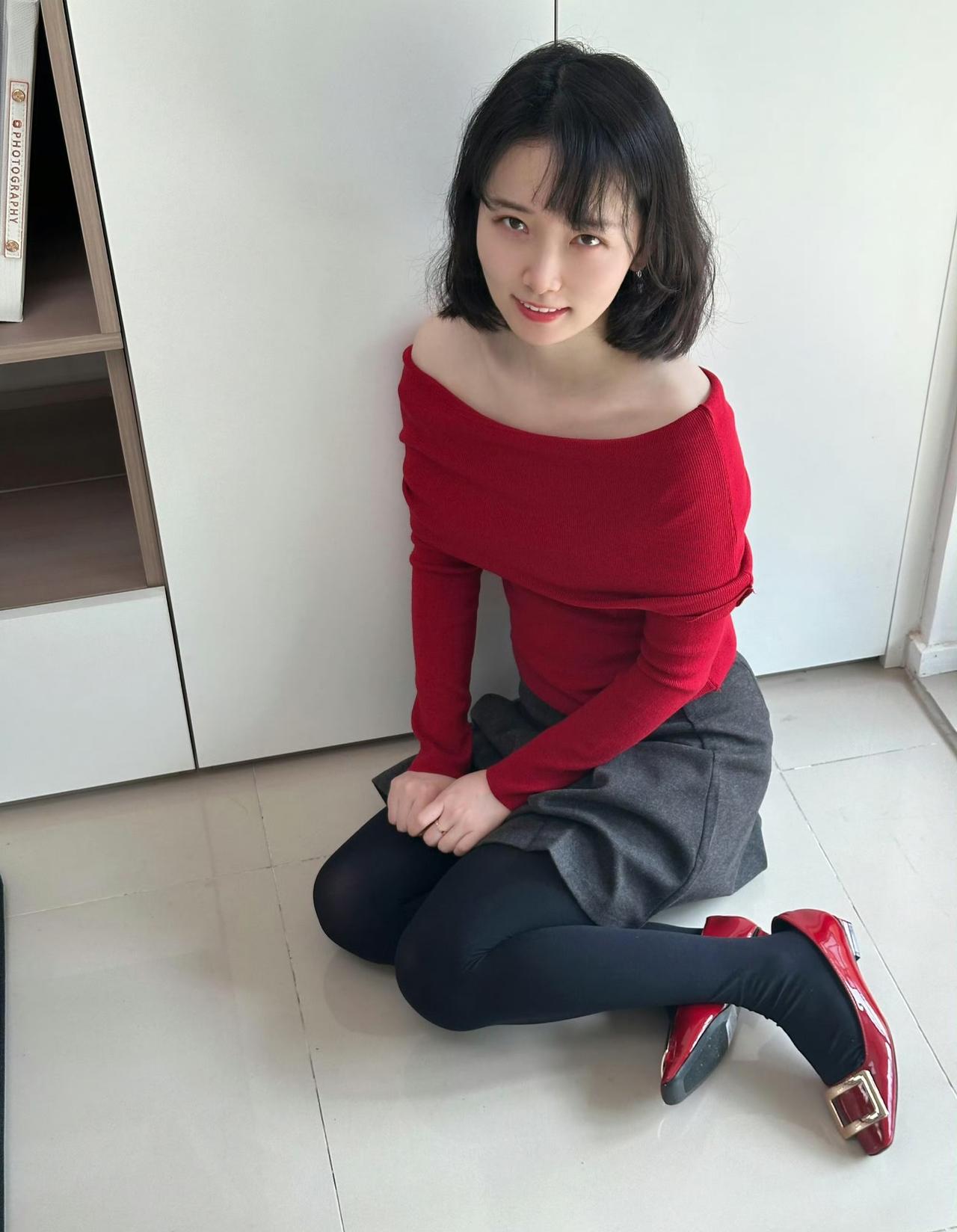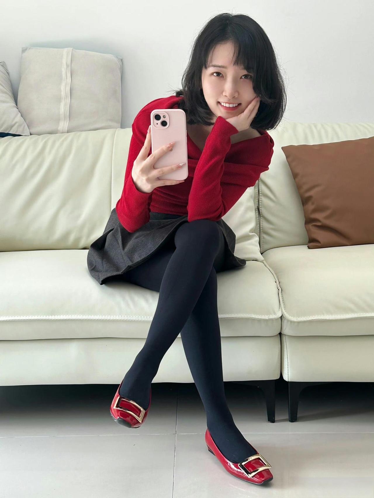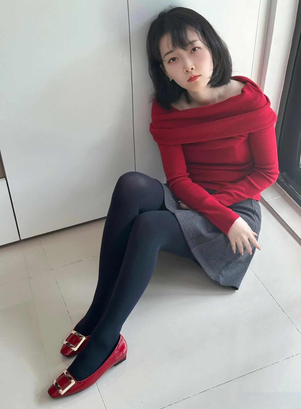 这套穿搭是明艳温柔的红灰搭配,把浓烈色调与柔美元素融合。红色露肩针织衫自带明艳温柔感,露肩设计注轻熟感;搭配灰调短裙,中和红色的浓烈,显利落得体。 搭配红色金属扣鞋强化轻熟精致感,和浅色系居家环境的柔和氛围高度契合,充分展现穿着者明艳温柔的轻熟魅力。黑红色穿搭 温柔红色穿搭