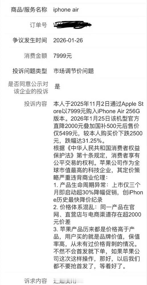 iPhone Air降价2000块钱,有老用户投诉了……