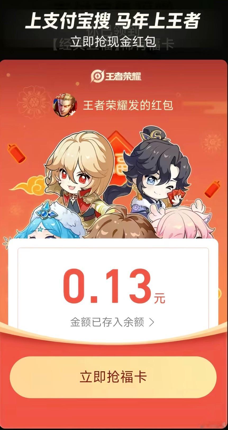 支付宝集福早鸟活动还有口令红包能领,放在这里了!原神口令:「五福临门就玩原神」小马宝莉口令:「小马宝莉集福卡」王者荣耀口令:「马年上王者」第五人格口令:「游戏我爱玩第五人格」赞萌露比口令:「露家军欢喜过大年」经典五福口令:「抢头福是头等大事」乡村爱情口令:「一家老小整挺好」无畏契约口令:「今年打瓦有福了」惊蛰无声口令:「惊蛰无声提前纳福」经典五福口令:「上支付宝抢头福」