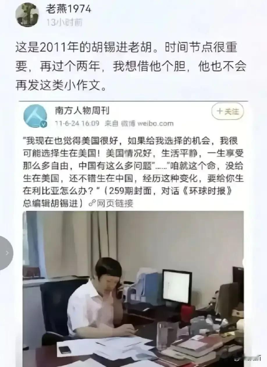 胡锡进作为环球时报前总编,竟然对美国的“斩杀线”保持沉默权,这是什么样的态度呢? 有个网友说得好,胡锡进作为一个受组织培养一辈子、受益至少两辈子的党员,作为一名宣传战线上的高级干部,身居要职。可是胡锡进不但没有揭露美西方资本主义的罪恶本质,反而被俘虏(老胡曾经表示希望生在美国),几乎成了美西方资本主义的代言人,处处与人民作对。 网友还表示,牢A是个年轻人,却勇于揭露美西方资本主义的吃人罪行,相比之下,胡锡进不觉得汗颜吗? 真如网友所说,胡锡进一辈子吃宣传这口饭,一路干到了总编职务,却在揭露美西方吃人罪行上保持沉默。 正所谓“食君之禄,忠君之事”,胡锡进在需要他冲锋陷阵的时候,却畏缩不前说什么“沉默权”,老胡是临阵怯敌吗?