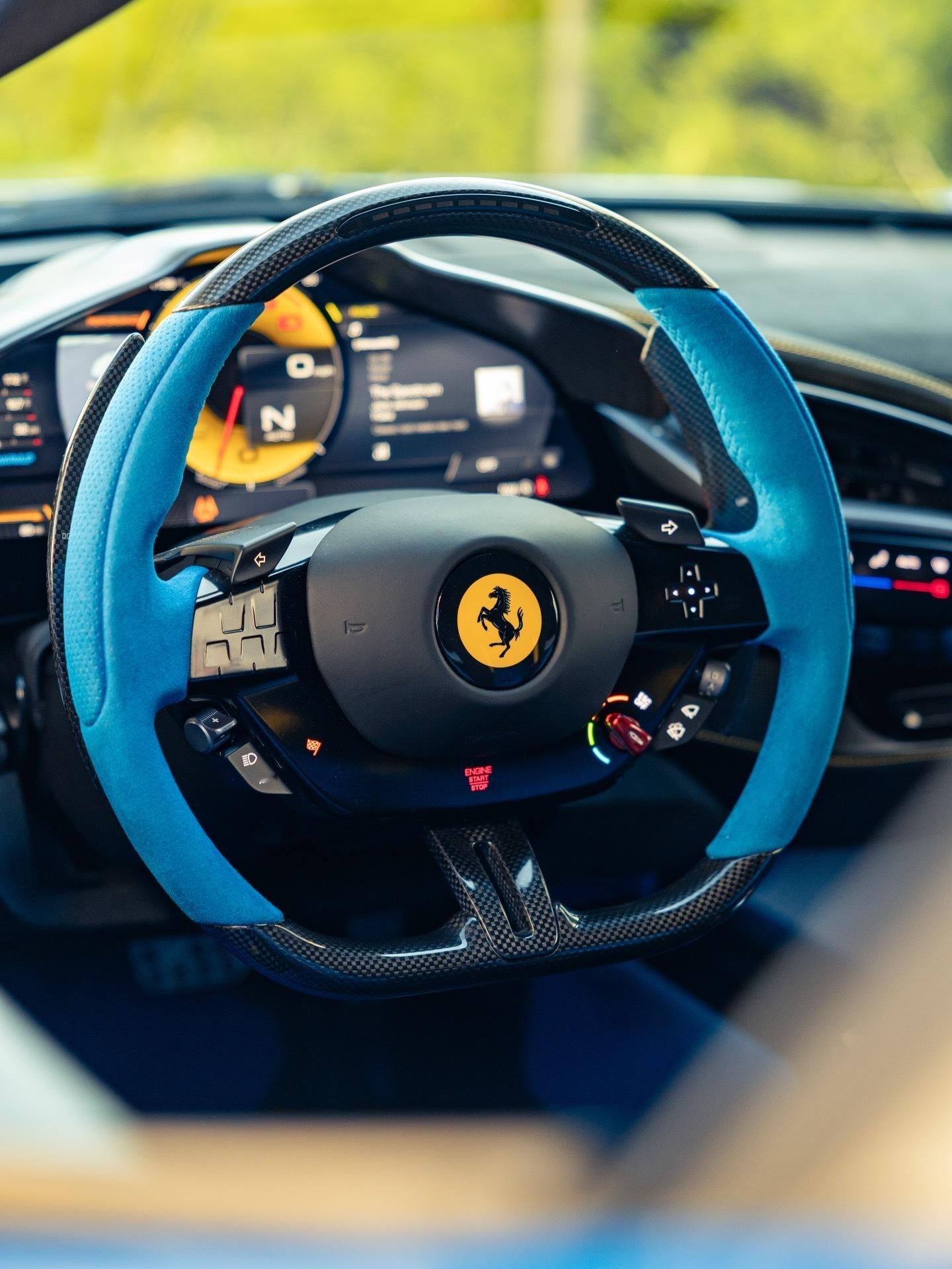 不确定您怎么坐进去驾驶它,但这就是它的设计初衷👏法拉利SF90XX有一些疯狂的设计细节,尤其是这个规格。全车都是碳纤维,道路上的存在感简直令人发指。蓝色配蓝色,再点缀一点黄色,是个不错的搭配,不知道这种颜色的名字是什么?.法拉利sf90豪车超跑老纪侃车