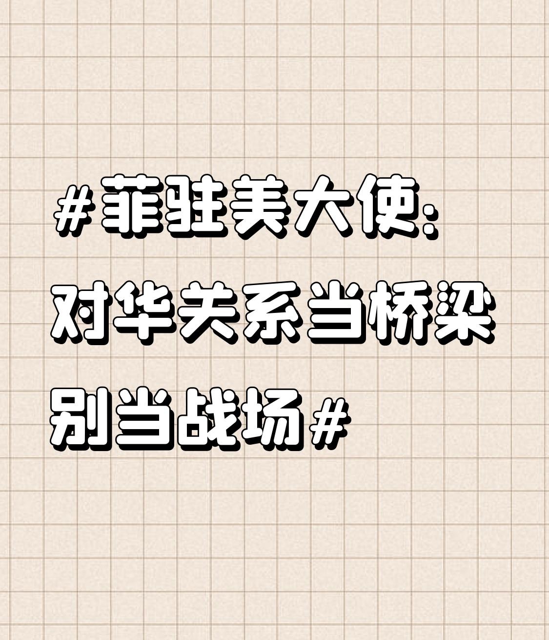 菲驻美大使:对华关系当桥梁别当战场 菲驻美大使这话算是说到点子上了。在中美关系复杂的大背景下,菲律宾其实一直处于一个微妙的位置。如果将自己变成中美博弈的战场,那菲律宾就成了别人的“棋子”,只能被动挨打,自身利益也会受损。 比如在一些地缘政治问题上,若盲目选边站,很可能会引发不必要的冲突和矛盾。而要是当桥梁,就有机会在中美之间斡旋,促进交流与合作,还能为自己争取更多的发展机遇和利益。希望菲律宾能真把这建议听进去,别做傻事。