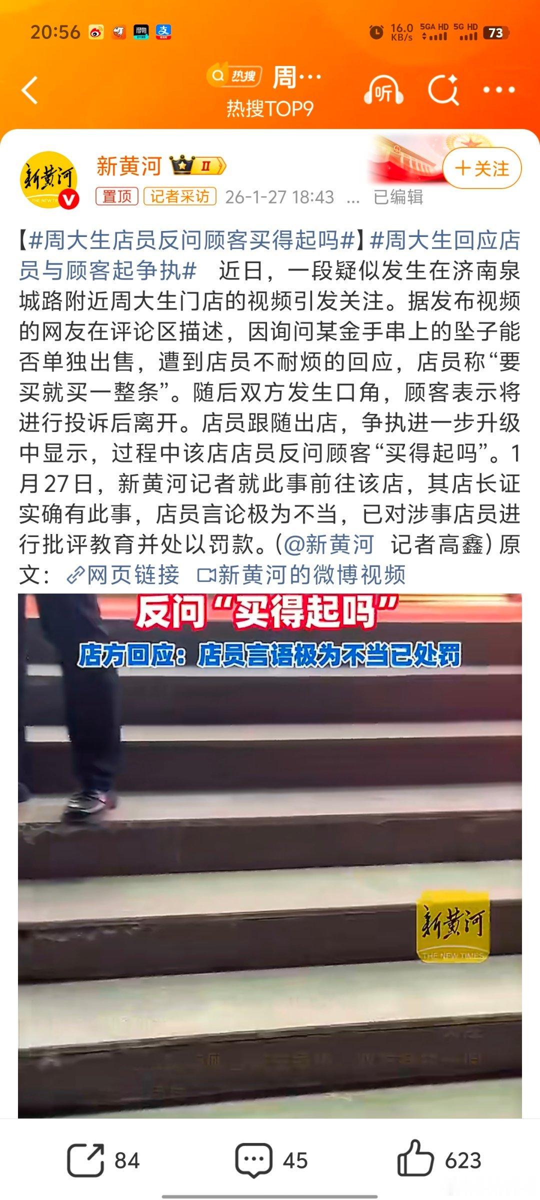 周大生店员反问顾客买得起吗现在这个事情还没有定性下来,但是博主以自己的角度去看,如果这个服务员真的说了那些“你买得起吗”类似的话,我认为这个服务员已经做到头了。在服务行业中最主要的一个应该就是不能把负面情绪带到工作当中。不知道大家的看法是什么呢,大家评论区谈一谈。