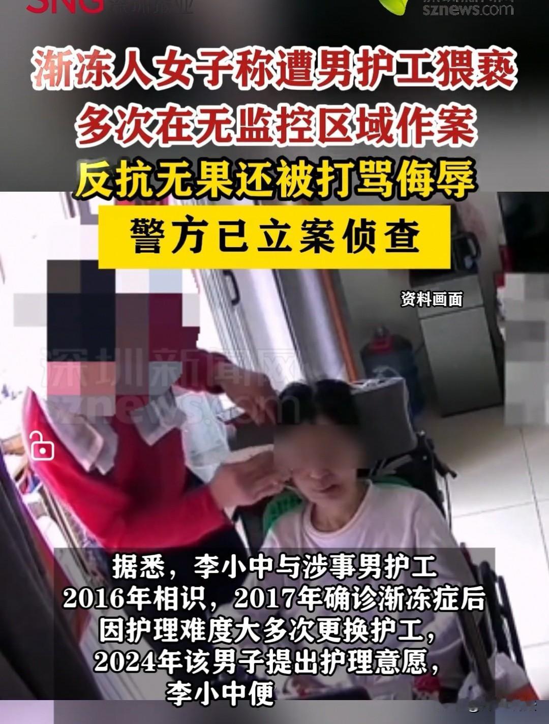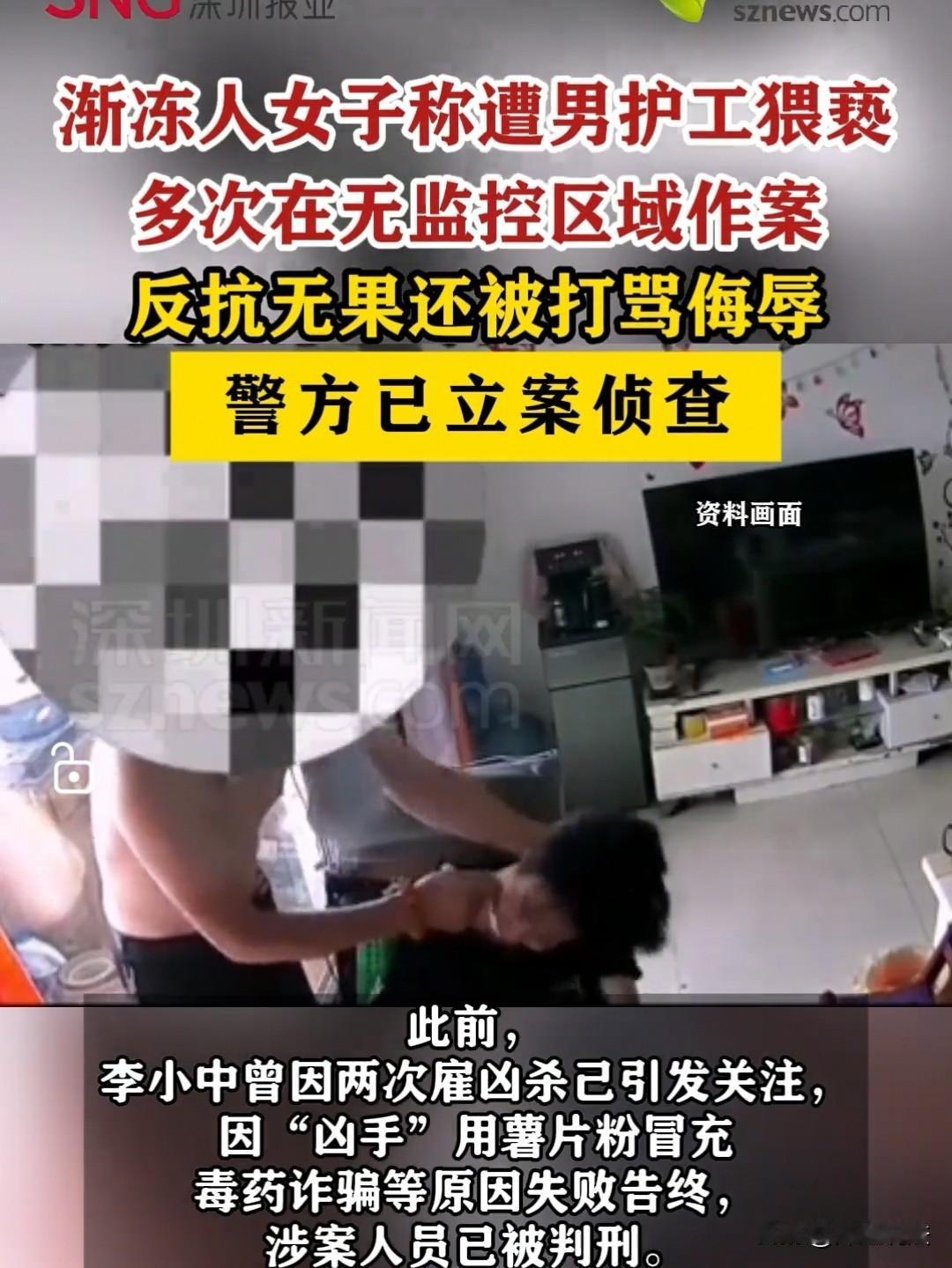 渐冻症病人被护工猥亵,已经立案!湖南,李小中以前在北京开理发店,当时就认识了男子,双方相处还不错,就成为了好朋友 第二年,李小中就检查出来是渐冻症,再也没有办法工作,连基本的生活都不能自理。 这期间她办理了低保,残疾证,平时的生活来源基本上就从这两方面的收入来,也有一些爱心人士向她捐款。 她用这些款项请了护工,但是对于渐冻症的病人来说,护理起来特别难,因此,隔不了多久,护工受不了了,就要走。 这时,男子得知消息后,就让李小中去山东,他来护理李小中。 李小中就像抓住了救命稻草一样,便打了顺风车来到了山东男子的家中。 结果来了后,经过一段时期的护理,男子居然性情大变,对李小中非打即骂。 李小中又没有办法反抗,再说自己也想再忍一忍,毕竟知道自己的病情,没有哪一位护工会有多么好的态度。 后来男子根本没有把李小中当成好朋友了,完全就是雇佣关系,知道李小中的家人不会为她出头,因此,从最开始辱骂发展到了殴打,扇嘴巴子。 即使这样,李小中还没有想过逃脱,她想,如果能够这样结束自己的生命,也算是一件幸运的事。 毕竟在2024年,她雇过他人来结束自己生命都失败了。 别人只是图她的钱,第一次居然用薯片冒充是药,自己吃了没事,最后事没有办成,别人还把她的钱给骗走了。 第二次她又下定决心离开这个世界,毕竟这个病让她身心俱疲,活着也没意义,也没尊严,还拖累家人,护工也不把自己当人看,与其这样晚走,不如早走。 可是出了钱后,对方还是没有实施具体的行为。 李小中本是怀着期盼,能用别人来结束自己一生,可是两次都受骗了,这给她的打击更大了。 因此还报了警,最后两次诈骗她的人都被抓捕了,最后,以诈骗罪和故意杀人未遂罪判刑。 第一次的被判处两年有期徒刑,缓期三年执行,罚款5000元。 第二次的人也被判处两年有期徒刑,缓期三年执行。 就这样下定决心离开,最后还是留了下来。 李小中就想如果这次被男子辱骂殴打后,自己能够离开人世也是好事。 可是到了2025年3月,接下来男子除了这些还猥亵她,这让她就受不了了。 你可以打我,可以辱骂我,但是不能侮辱我,这是李小中最大的底线。 最后,她终于下定决心,又打顺风车回到了湖南家里,立即报了警。 她说自己是女性,想反抗,但又没有效果,对方还是在没有监控的卫生间,角落里对自己进行猥亵,这对她的精神是特别大的刺激,希望民警能够还她一个公道。 最后,民警也立即立案,开始下一步的侦查工作。 有人觉得,如果男子确有此事,那真的应该重罚,怎么可以去欺负一个弱者呢?就没有一点怜悯之心吗? 《刑法》第二百三十四条:故意伤害他人身体的,处三年以下有期徒刑、拘役或者管制。 《刑法》第二百三十七条:以暴力、胁迫或者其他方法强制猥亵他人或者侮辱妇女的,处五年以下有期徒刑或者拘役。 男子对无反抗能力的渐冻症患者李小中实施殴打、猥亵,分别涉嫌故意伤害罪、强制猥亵罪,针对残疾人的侵害属酌定从重情节,查实后将依法叠加处罚,追究其刑事责任,常见量刑区间为2-7年有期徒刑 对于此事,大家如何看?素材来源于深圳新闻网