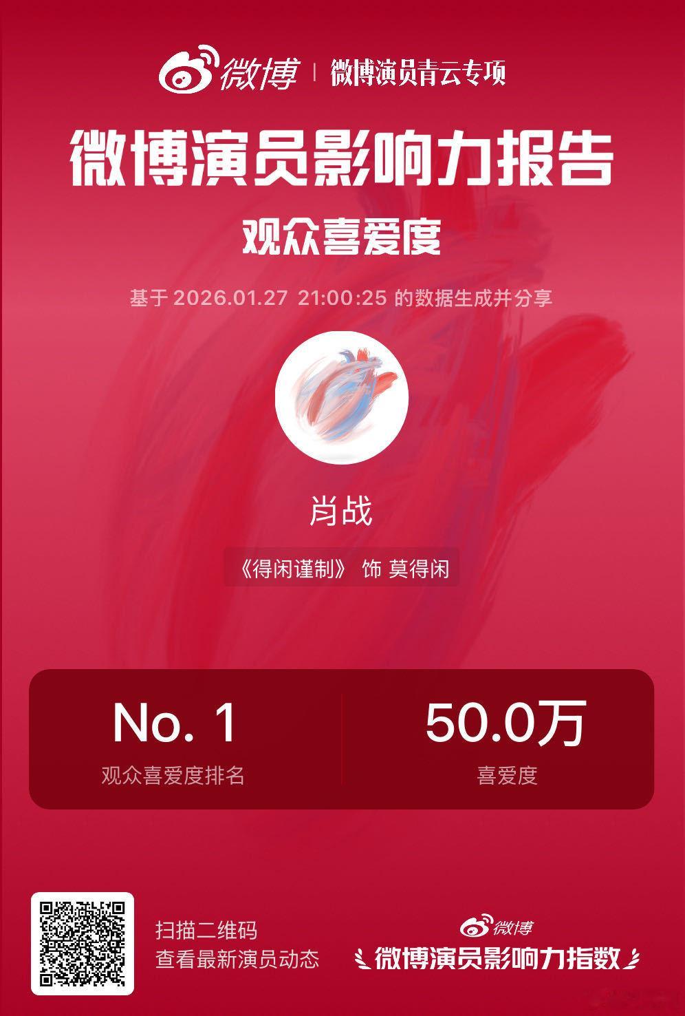 肖战莫得闲观众喜爱度破50万 恭喜 《得闲谨制》莫得闲观众喜爱度突破50万!用匠心与手艺为武器,在乱世守卫家园!角色用最朴实的力量让观众产生极大共鸣,这份喜爱是观众对角色与演绎最直接的认可!期待演员肖战未来更多精彩演绎!戳👉 微博演员影响力指数 一键直达,一起支持你喜爱的演员吧~