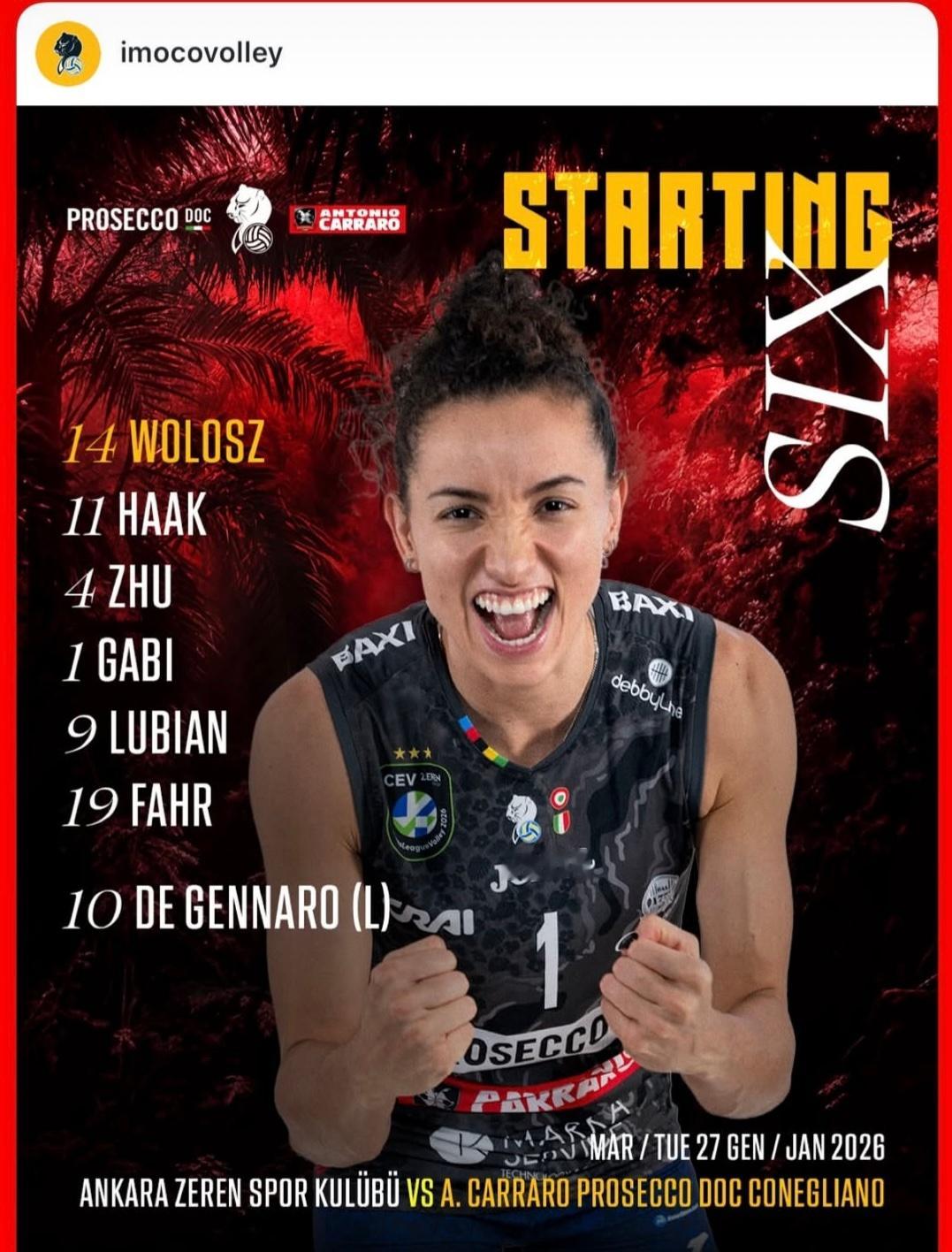 朱婷首发!卢比安替换了齐里切拉!朱婷
