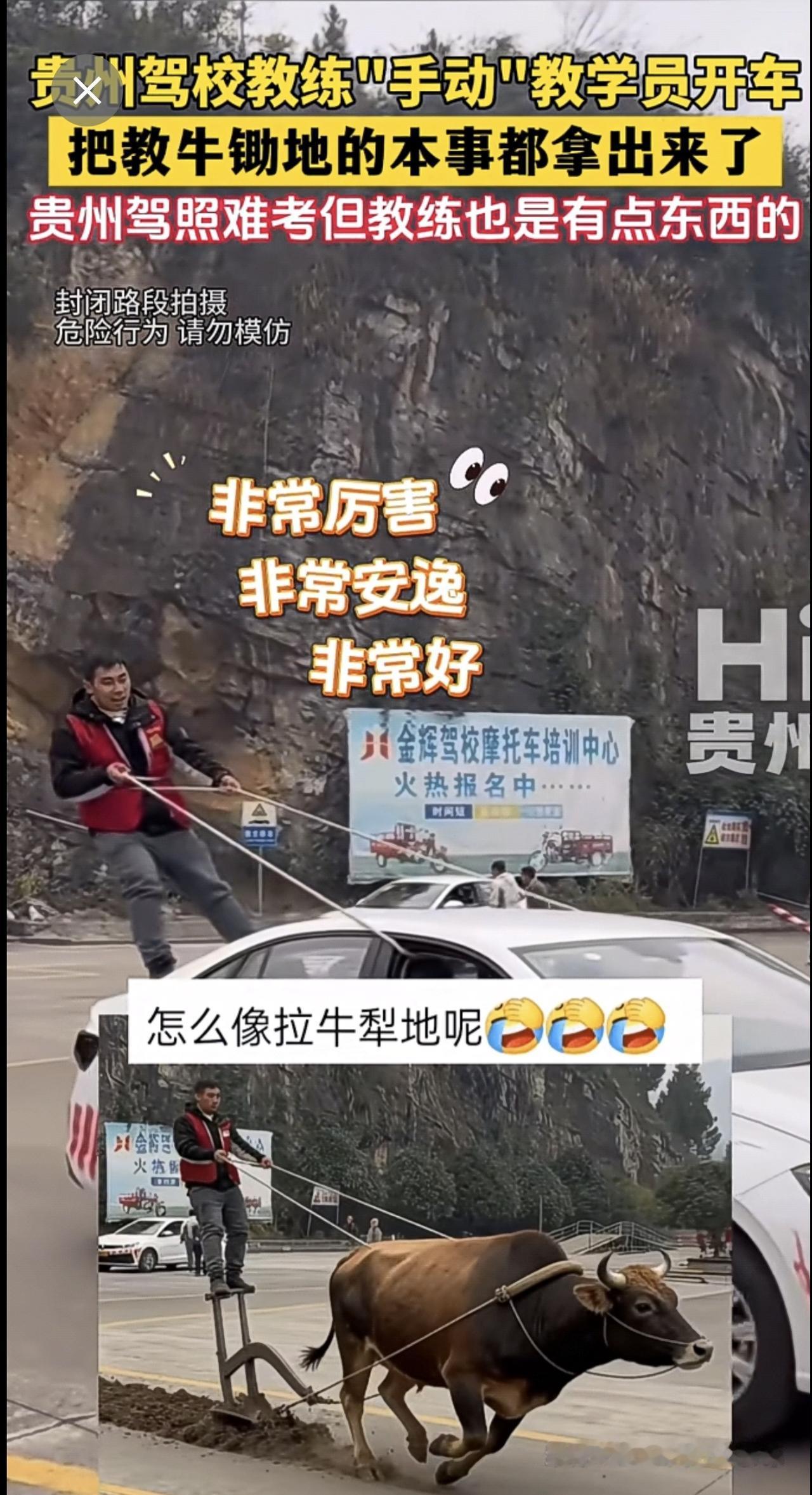 贵州驾校教练"手动"教学员开车 把教牛锄地的本事都拿出来了,贵州驾照难考但教练也是有点东西的。hi贵州 贵州驾校教练情绪价值太足了 贵州驾照的含金量 素材来源:驾考小文教练