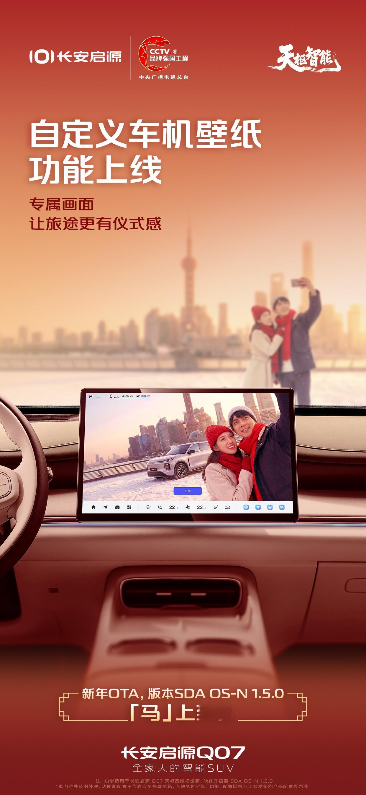 长安启源Q07天枢智能视觉版新年OTA「马」上到位行业首搭ICCOA Carlink2.0镜像+融合新增车机壁纸自定义、空调速热模式新年出行开启驾趣新体验智慧进阶,体验焕新长安启源Q07全家人的智能SUV天枢智能新安全