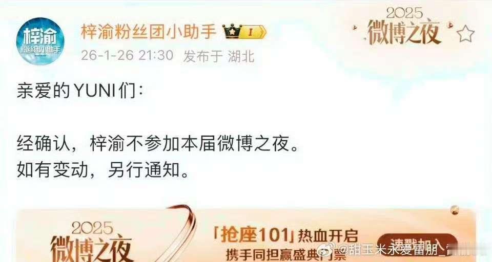梓渝田栩宁不参加微博之夜梓渝田栩宁不参加微博之夜迪丽热巴也不去粉丝争抢了半天