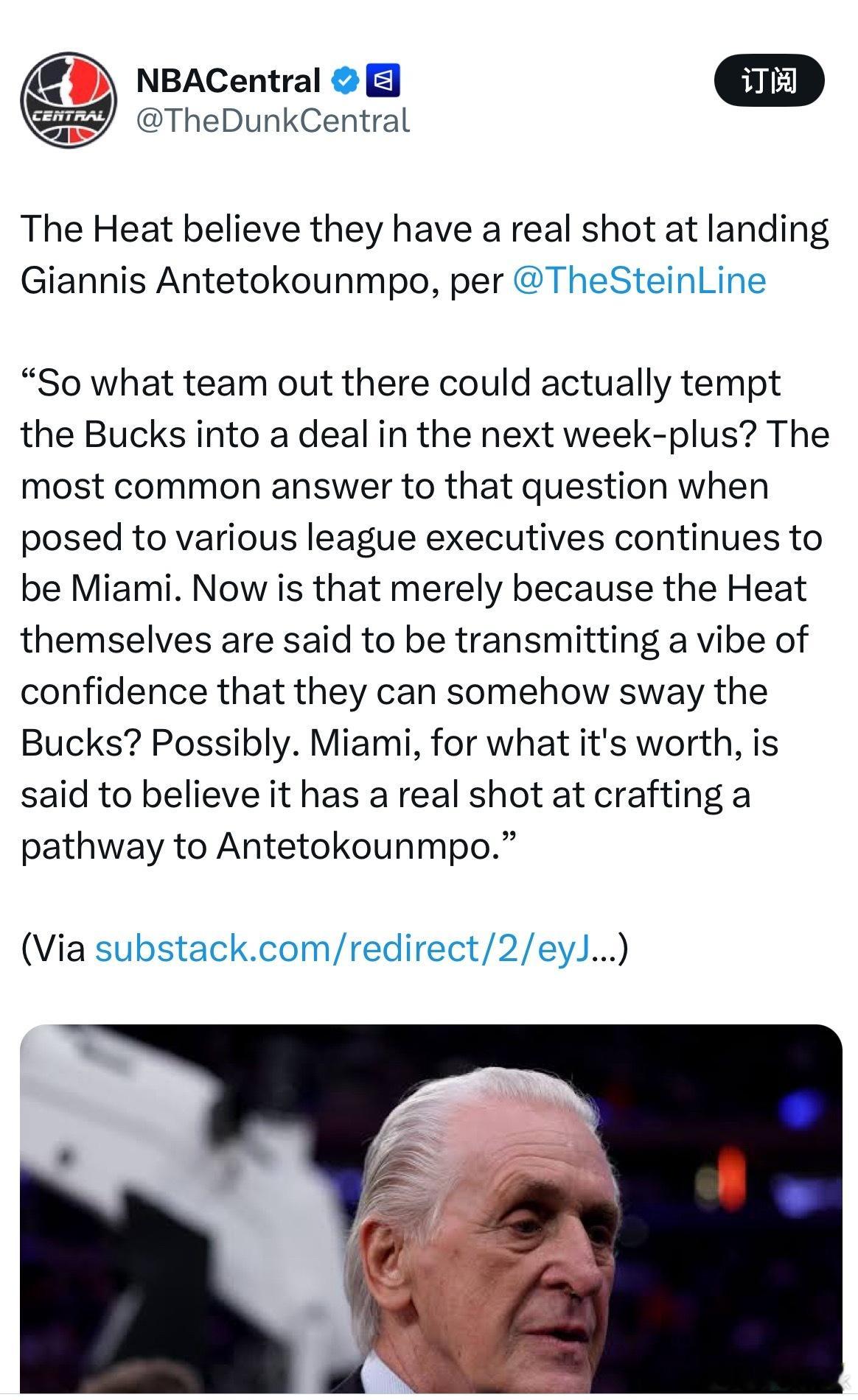 TheSteinLine 透露,热火相信他们有真实机会得到扬尼斯阿德托昆博。联盟高管私下讨论时也普遍认为唯一可能在短期内真正打动雄鹿的球队,是迈阿密热火。nba常规赛nba点赞成金