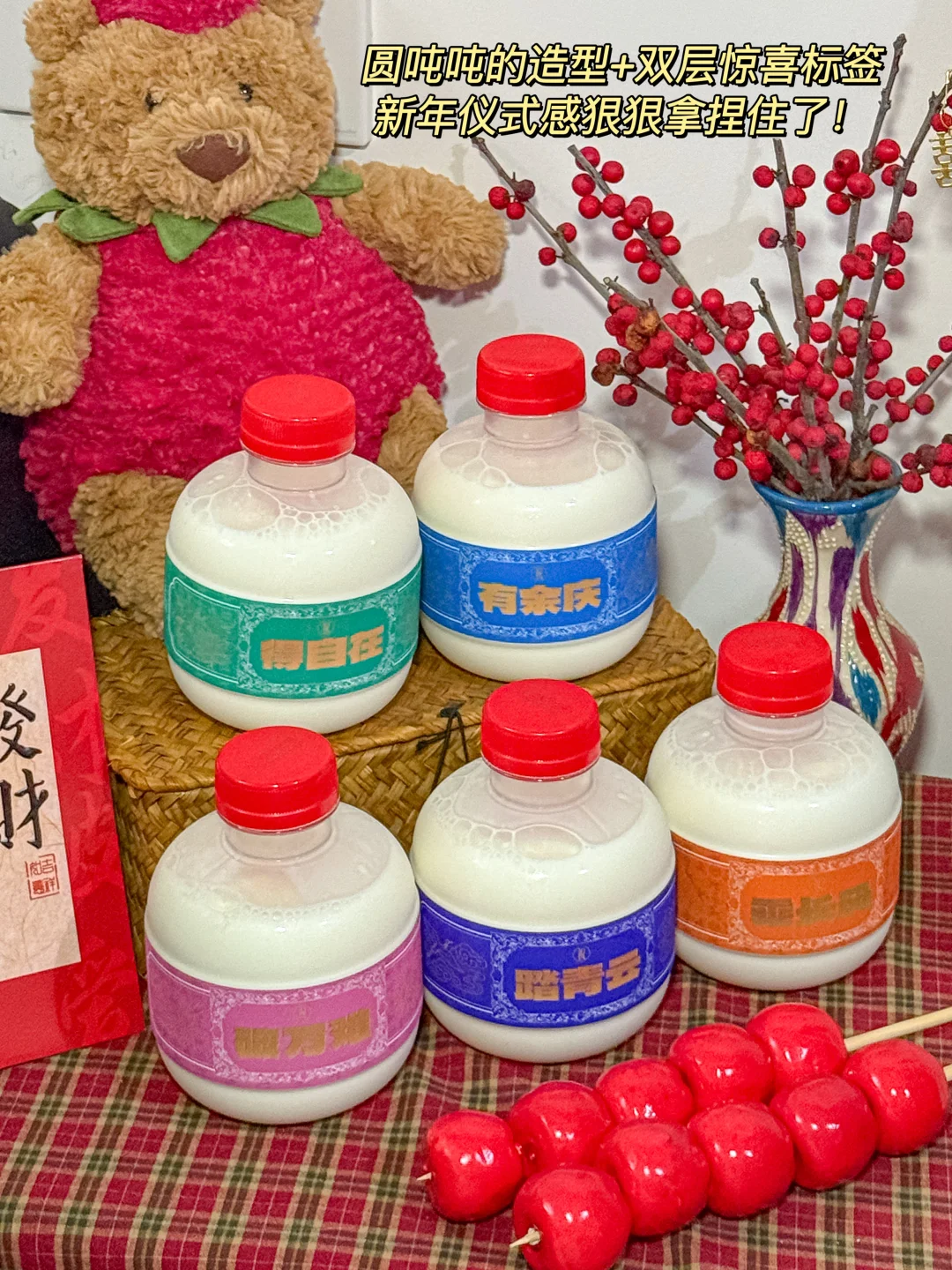 🥛圆吨吨的造型配上双层惊喜标签,每一瓶都能开出一句专属祝福,新年仪式感狠狠拿捏住了~
