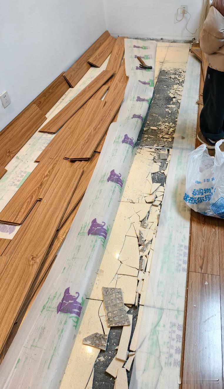 千万不要在瓷砖上铺木地板!!!! 之前装修是老房改造,原来地面是瓷砖,重装全屋木