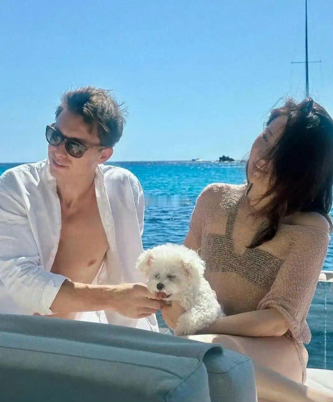 陈赫前妻许婧晒外国帅老公,两人定居南意坐游艇出海38岁身材很好。