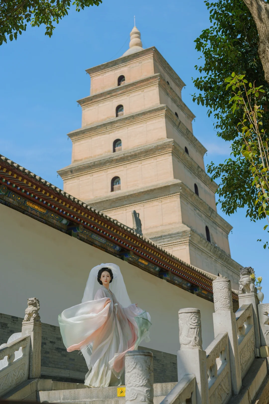 2️⃣大雁塔两侧台阶上,和塔身同框