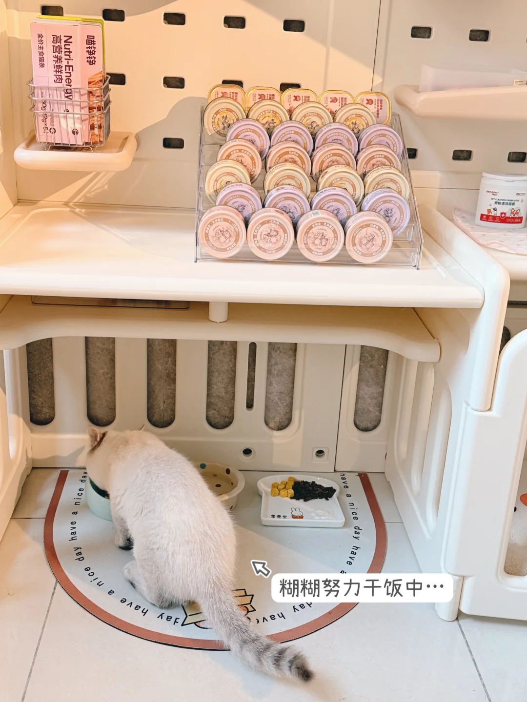 🍚干饭区:把陶瓷粮碗摆上,还铺了餐垫,崽吃饭都得先绕着转两圈
