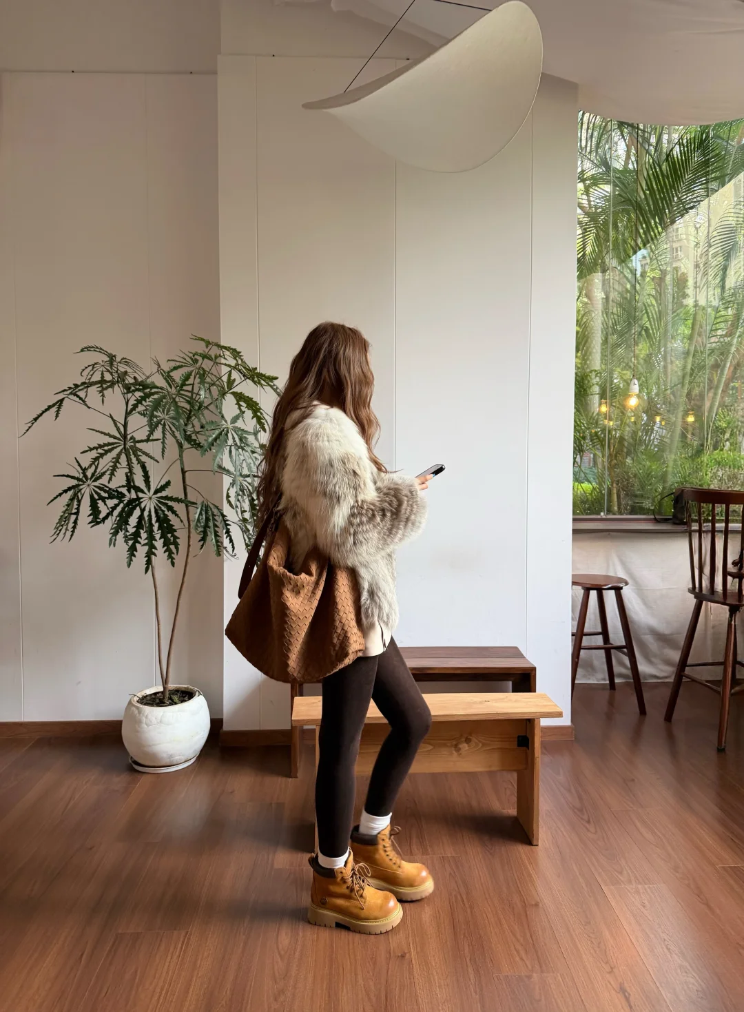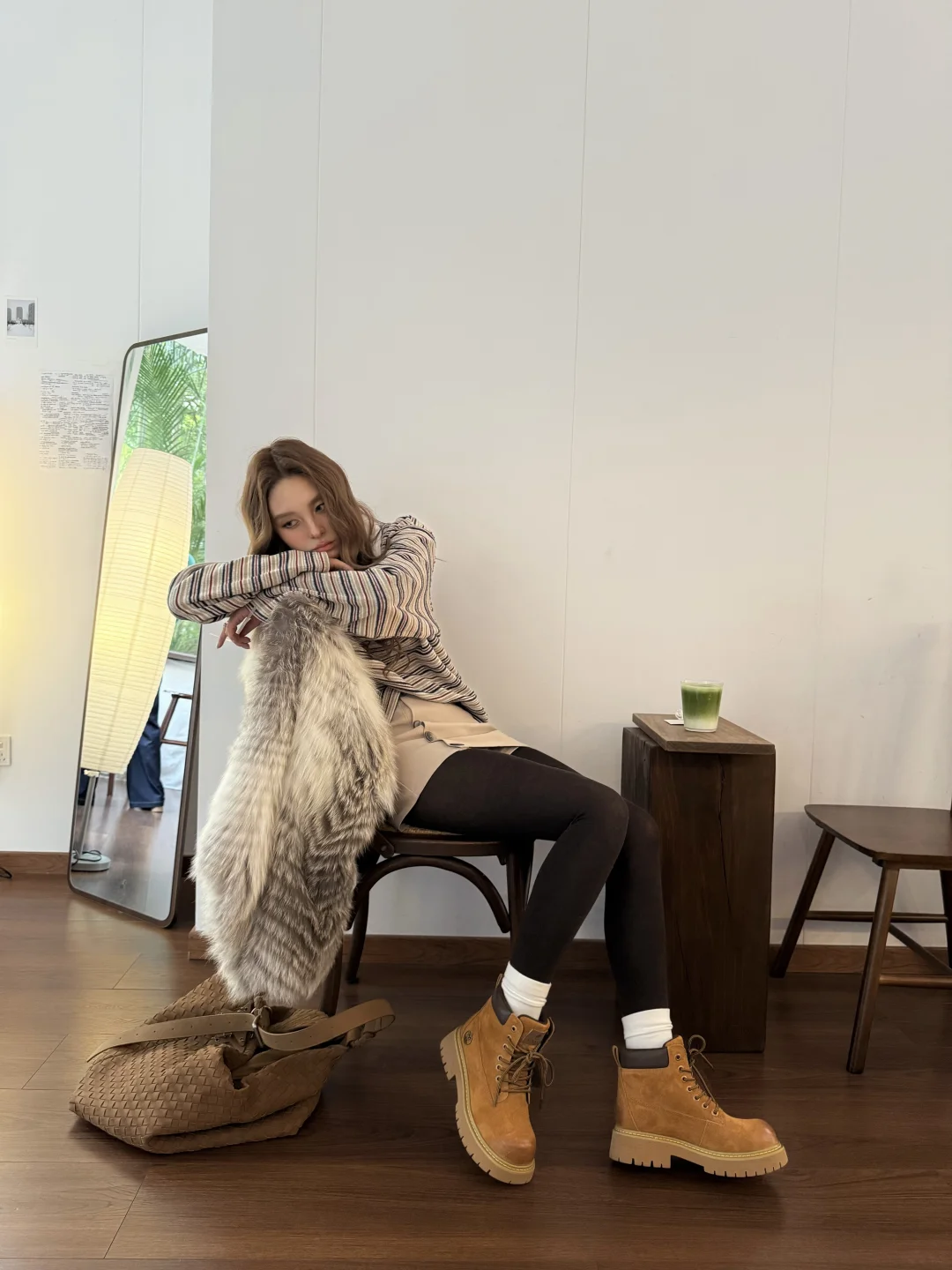 和小猫 喝咖啡 复古棕色系 非常适合这个秋冬哇 马丁靴复古穿搭皮草穿搭毛绒绒深圳探店深圳周末去哪儿堆堆袜皮草穿搭