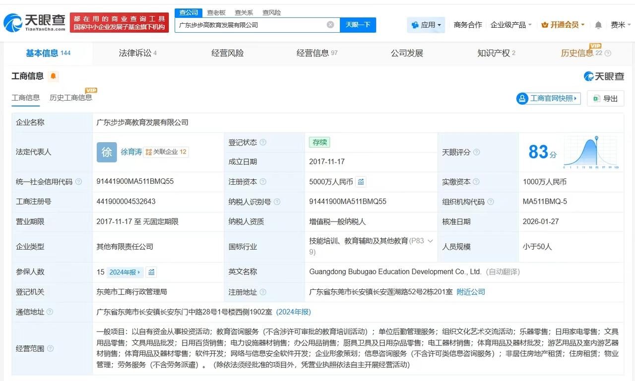 【OPPO、vivo等入股广东步步高教育发展公司】天眼查App显示,近日,广东步步高教育发展有限公司发生工商变更,新增vivo关联公司维沃控股有限公司、OPPO广东移动通信有限公司、东莞步步高教育科技有限公司为股东,原股东东莞市小博士教育软件有限公司、东莞市鹏派贸易有限公司退出,同时,谢勇卸任法定代表人、董事长、经理,徐育涛接任法定代表人、经理并担任董事。 该公司成立于2017年11月,注册资本5000万人民币,经营范围包括以自有资金从事投资活动、教育咨询服务、单位后勤管理服务、组织文化艺术交流活动等。