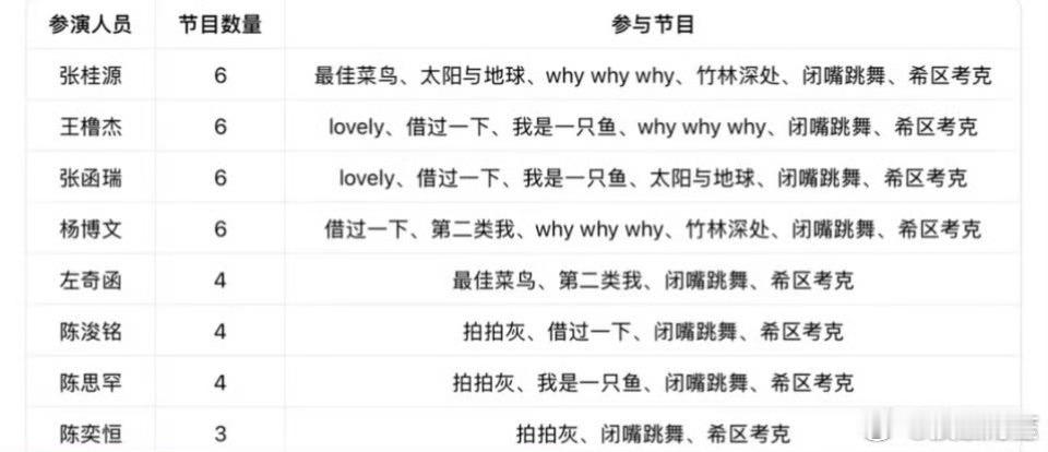 荣耀之战四代彩排歌单疑似曝光后,王橹杰,陈奕恒,杨博文,陈浚铭,左奇函粉丝都开始维权了。荣耀之战有现场投票TF家族四代荣耀之战练习室