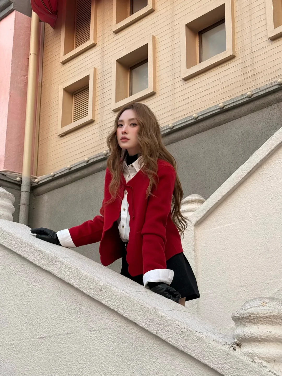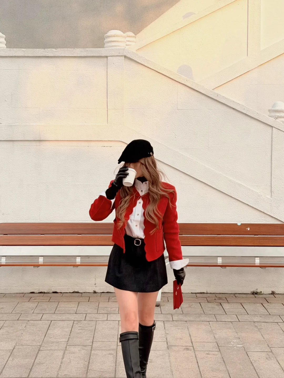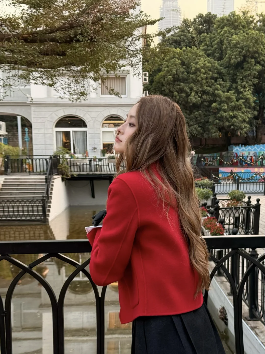 新年倒计时🍷🔔 这个时候连街道都会装点漂亮 何不给自己好好装扮一番再出门呢🤓 红红火火发财红 欧时力新年新中式系列太好看啦 原来这个颜色叫亨特红 显白显气质 是很特别的高级红 穿上就是新年聚会“时髦小姨” 新年安排上 打麻将必赢🥰 过年穿什么红色外套新中式穿搭红色新中式秋冬穿搭新年红已经开始期待过年了