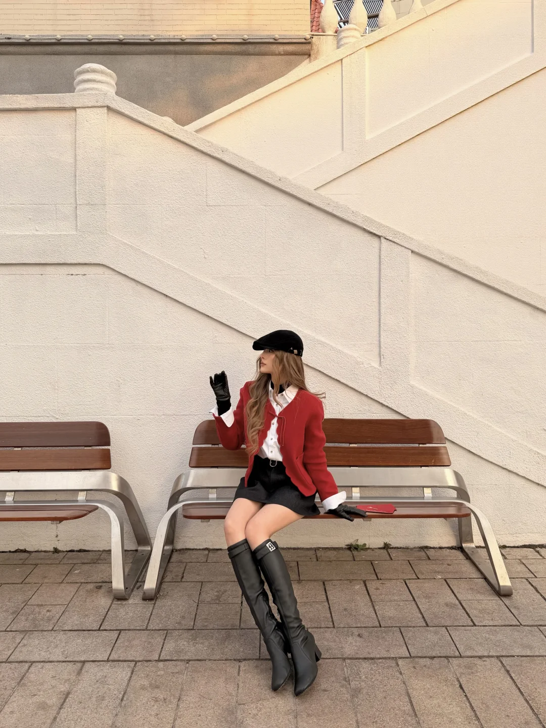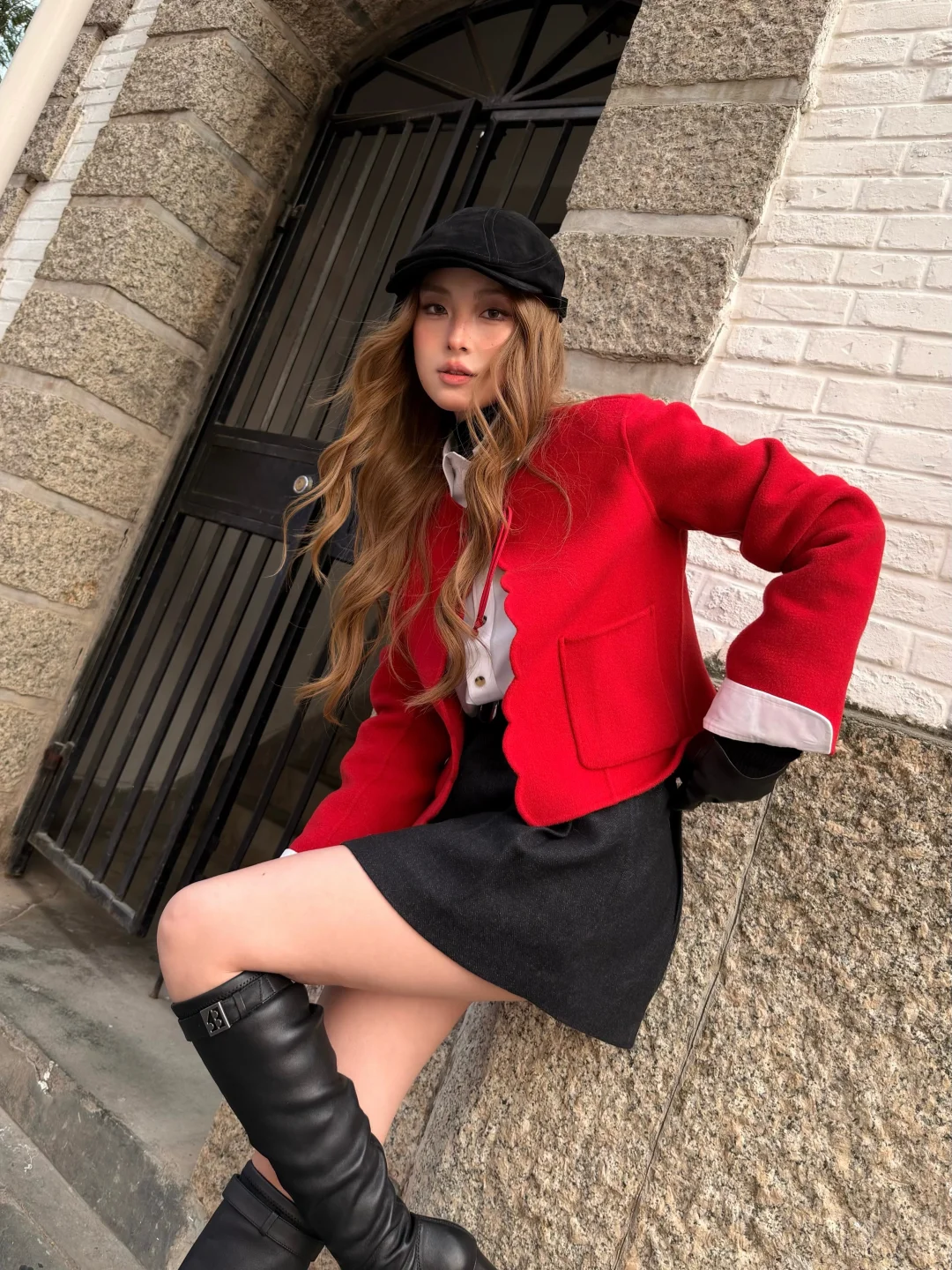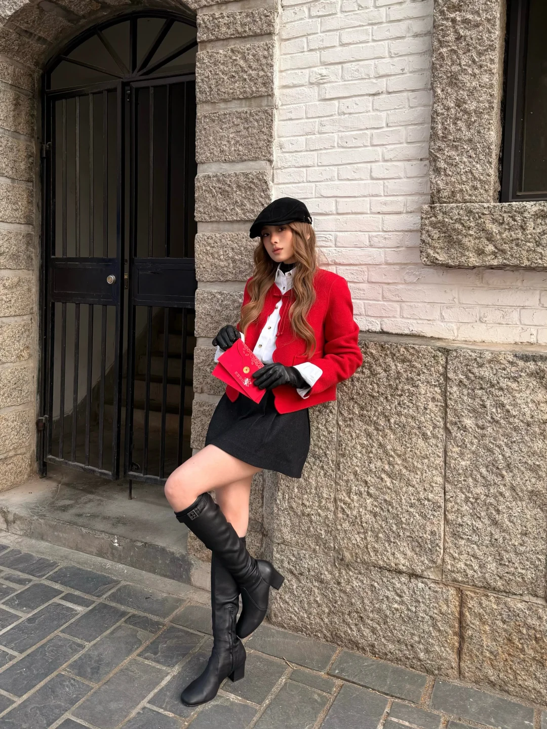 新年倒计时🍷🔔 这个时候连街道都会装点漂亮 何不给自己好好装扮一番再出门呢🤓 红红火火发财红 欧时力新年新中式系列太好看啦 原来这个颜色叫亨特红 显白显气质 是很特别的高级红 穿上就是新年聚会“时髦小姨” 新年安排上 打麻将必赢🥰 过年穿什么红色外套新中式穿搭红色新中式秋冬穿搭新年红已经开始期待过年了