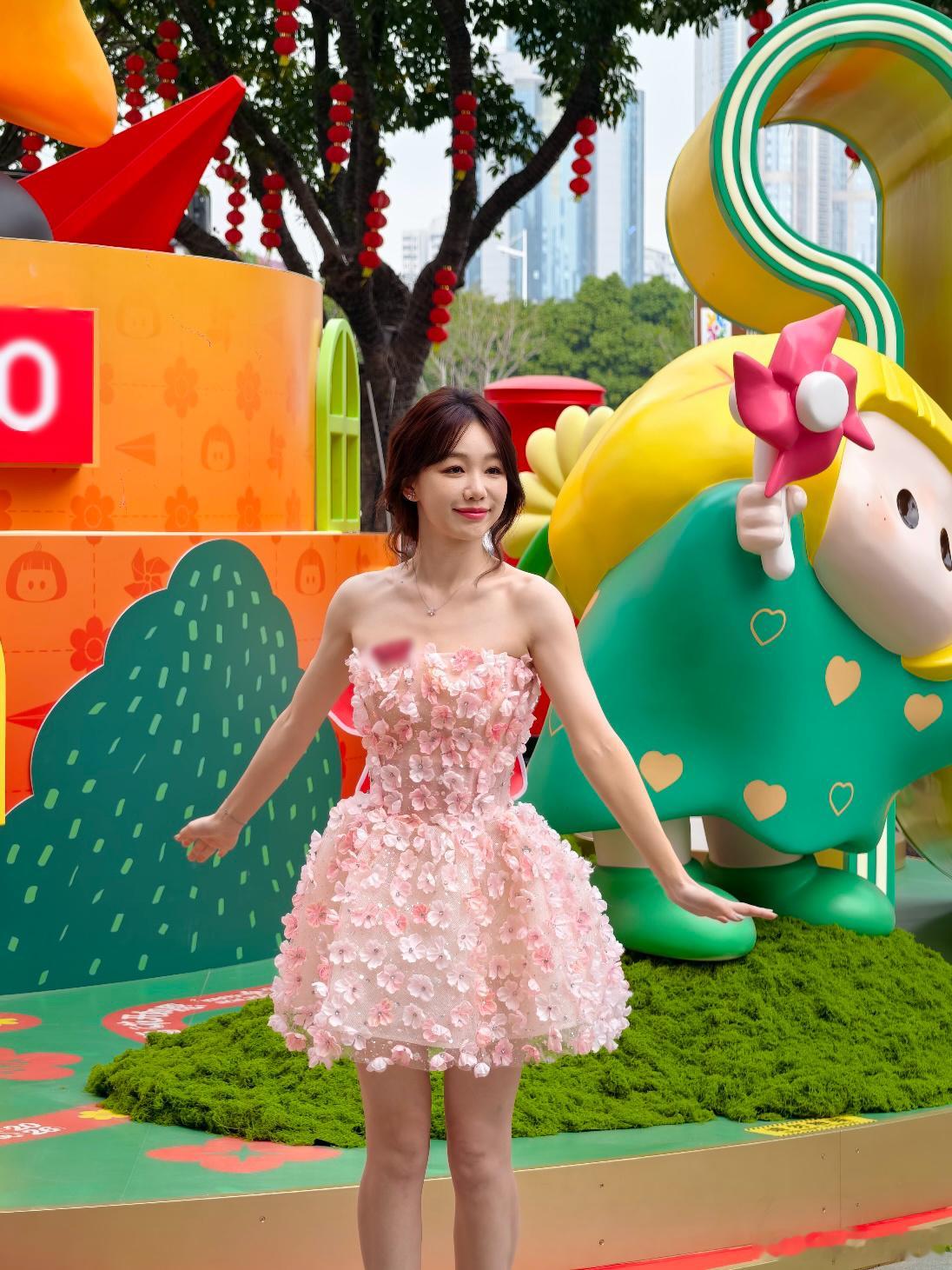 张天爱跟素人合影,胯真的好宽,大宅院似的