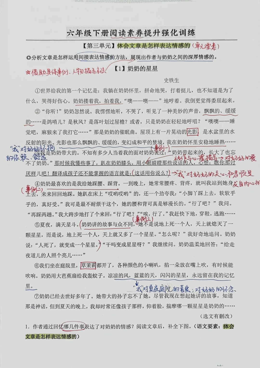 六下语文|【第三单元】阅读理解答题模板