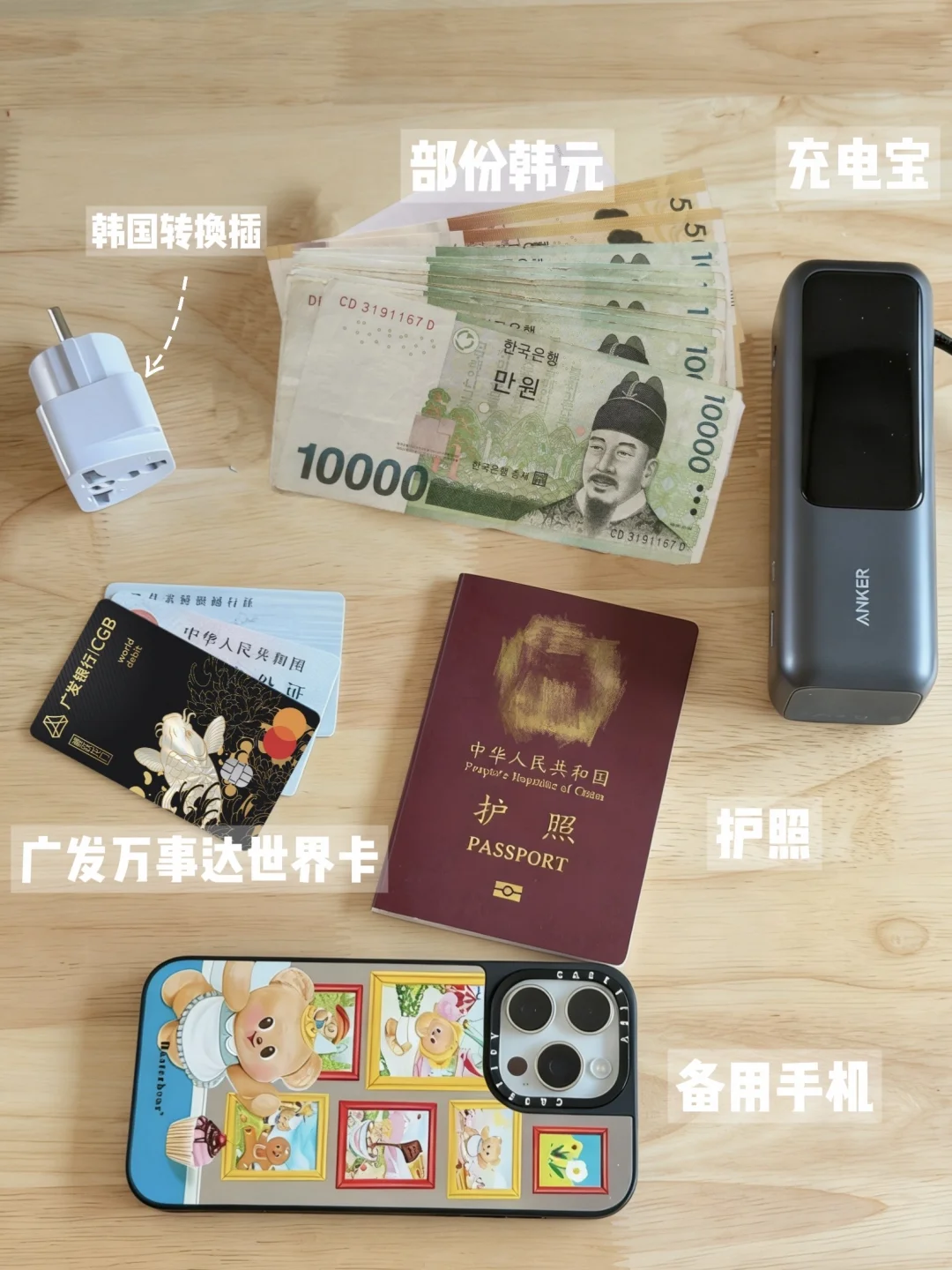 如果你是第一次去韩国旅行计划和我一样自由行~ 这篇攻略速度码住💐 🗺️行程: D1: 汉南洞-梨泰院 D2:首尔ktx去釜山-釜山海云台沙滩喂海鸥(有时间去松岛坐海上缆车)-釜山夜市 D3:甘川文化村-海云台蓝线小火车-自助泡面体验 D4:釜山ktx去首尔-北村韩屋-弘大 D5:景福宫-返程 🪪必备物品: 【签证】 提前办单次或多次签,护照有效期6个月以上 【现金及万事达借记卡】 韩国有些小店用不了电子支付,准备点现金和万事达借记卡很必要~ 借记卡我用的是广发万事达借记卡,不仅在ATM取现免手续费,境外的支付优惠也很多 有了它,我出行都顺利多了,简直就是我的出境游锦鲤 ✅一是达到广发F5及以上会员等级,境外消费每笔返现至高4%(至高月返218元),至高全年境外取现免无限次手续费 ✅二是去olive young消费满额返现高至11%,去新世界免税店、新罗免税店等消费满额返现高至10%,几乎等于折上折 ✅三是出境前用它在某程上预订机酒,还能享85折(至高减50元) ✅四是去香港日本新加坡英国等地区,可以直接当地铁卡用 🚇【交通卡和电话卡/流量】 韩国不支持信用卡进站 在便利店买一张Tmoney卡 或在机场,买一张LGU的电话公交卡二合一的 或买流量包无忧行也ok 🔌【转换插】 去韩国带欧标转换插,设备很多的带个mini拖线板 【充电宝】 韩国共享充电宝很贵!带一个有3C认证的 【舒服的鞋】 韩国很多上下坡要穿个舒服的鞋