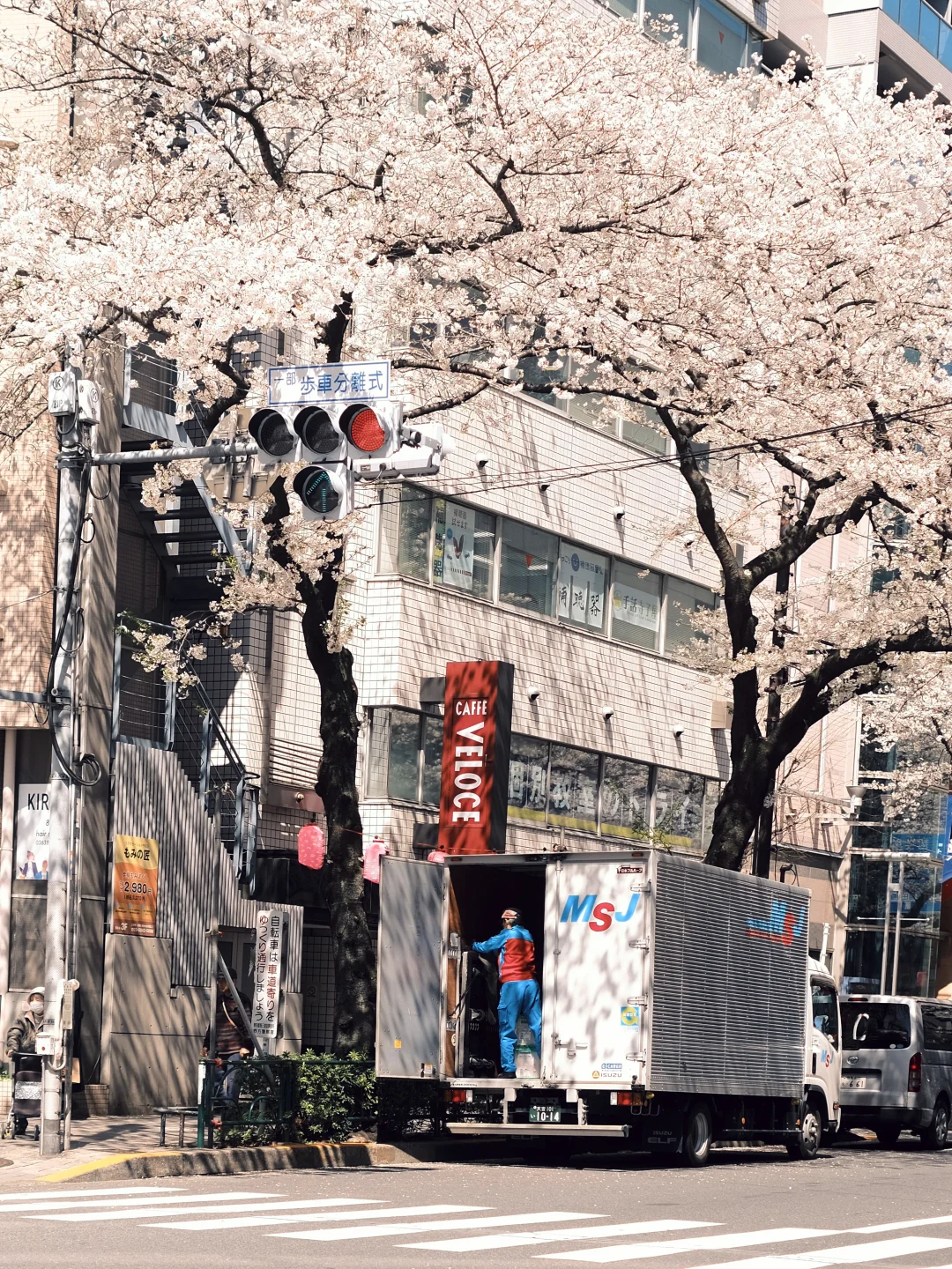 在日常的街道,走在路上抬头就是樱花,一下子就变得很温柔