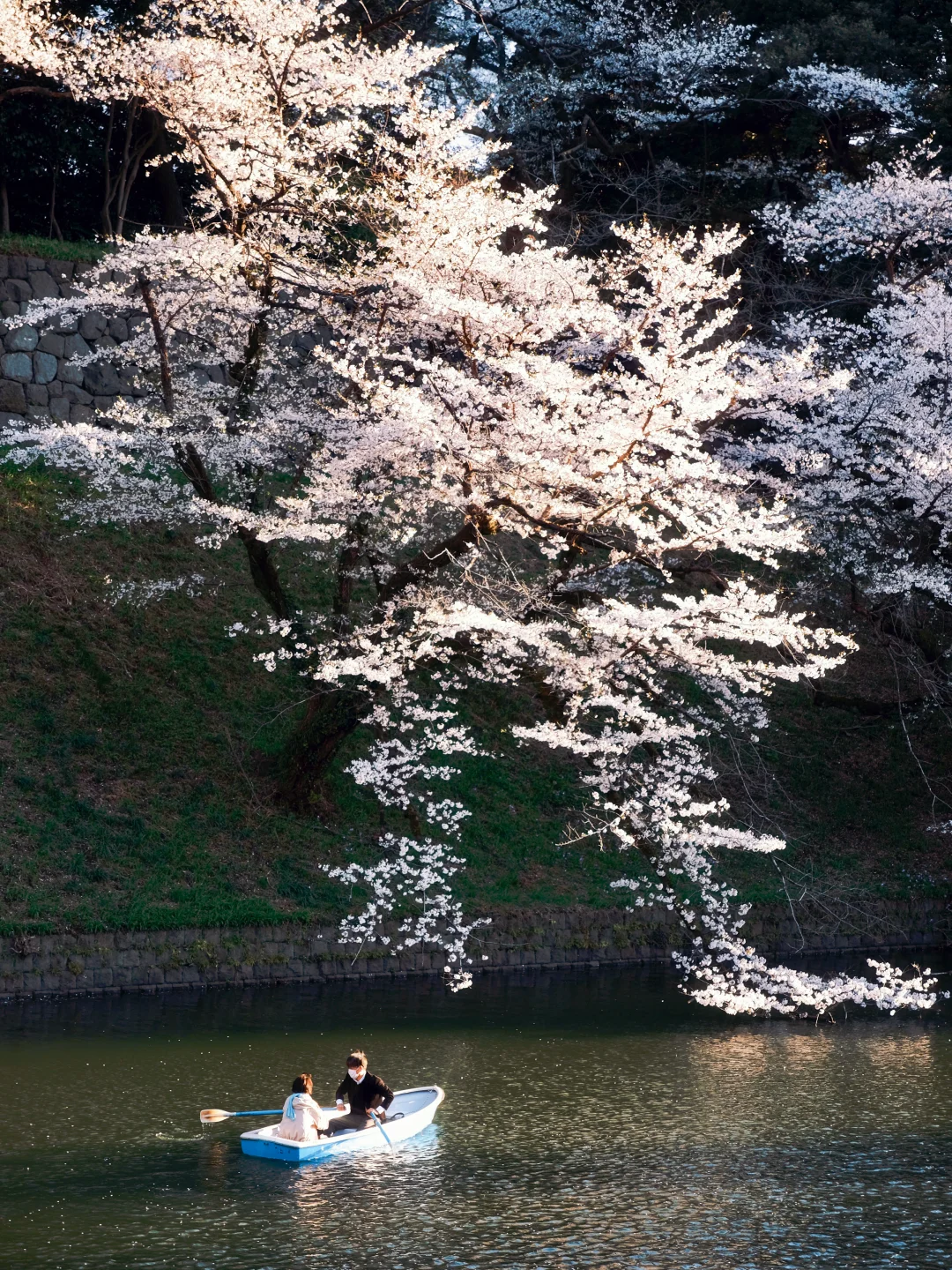 东京比较经典的赏樱点,花影落在水面上像一幅画