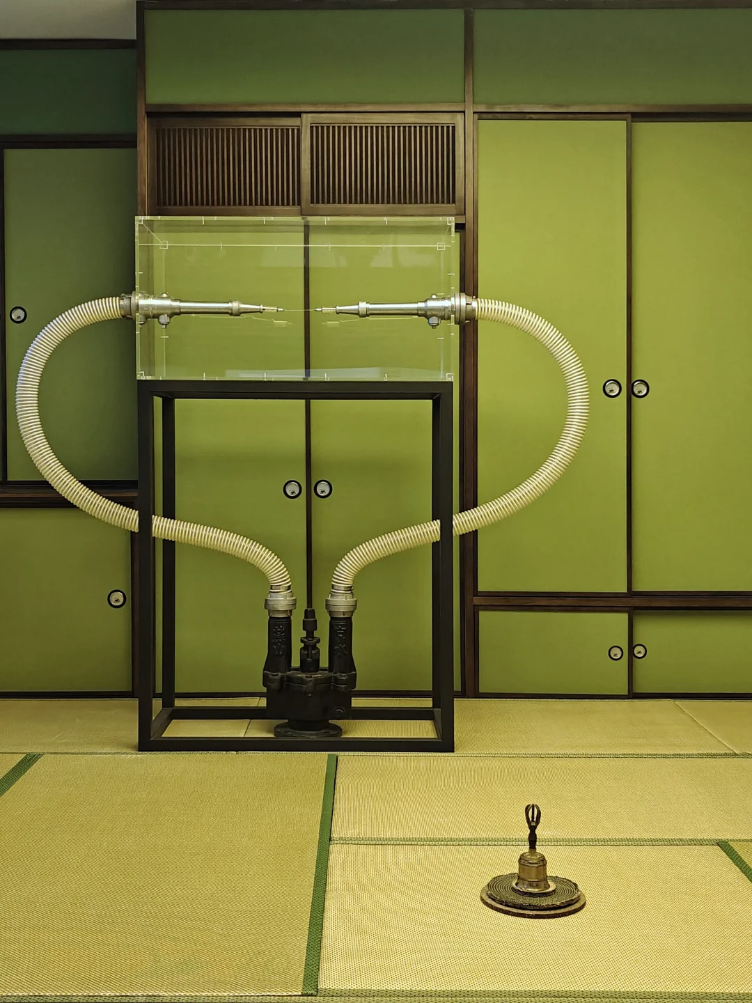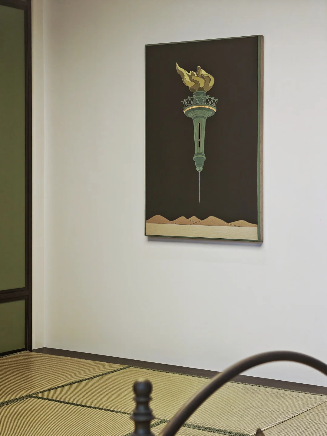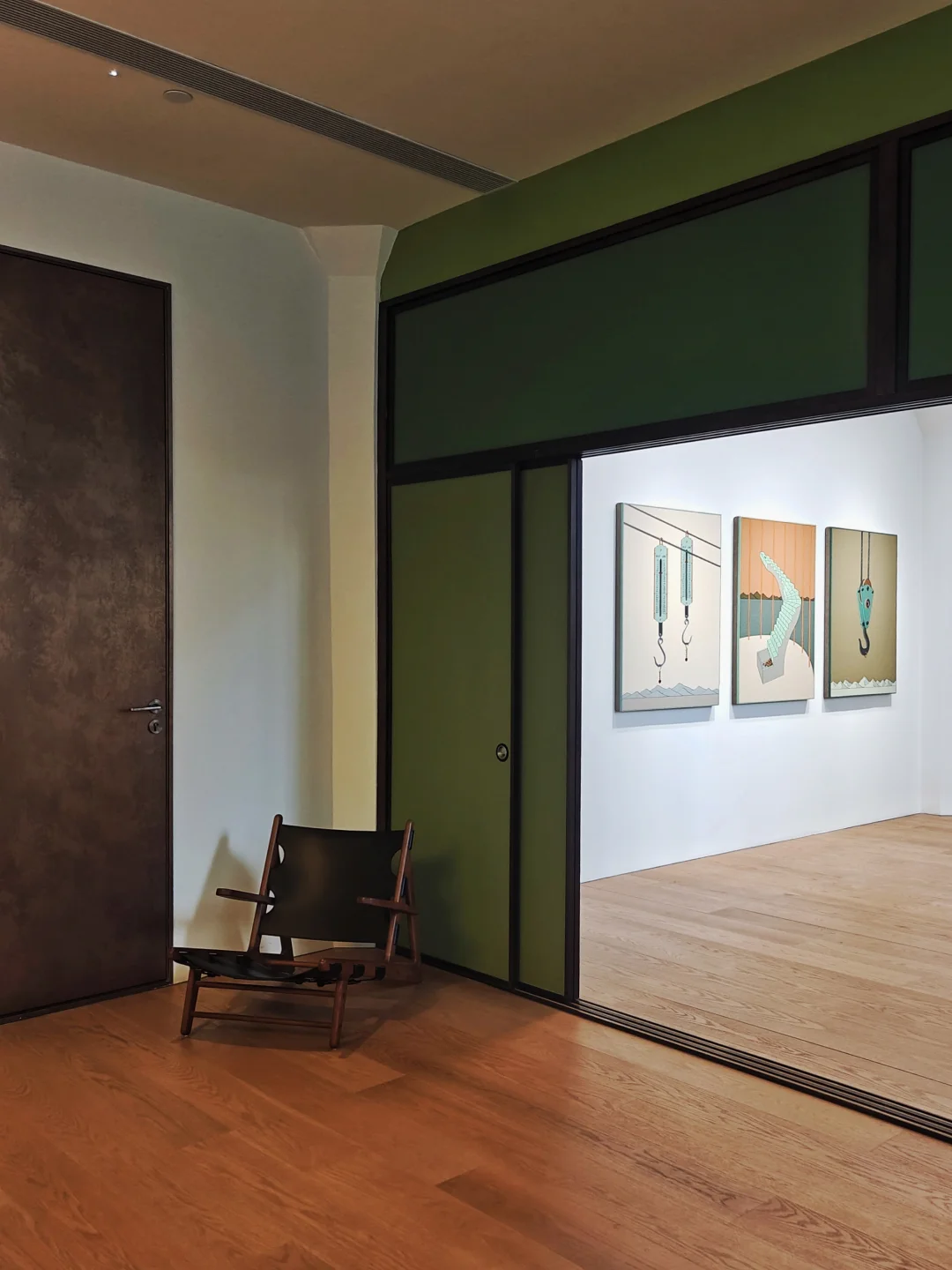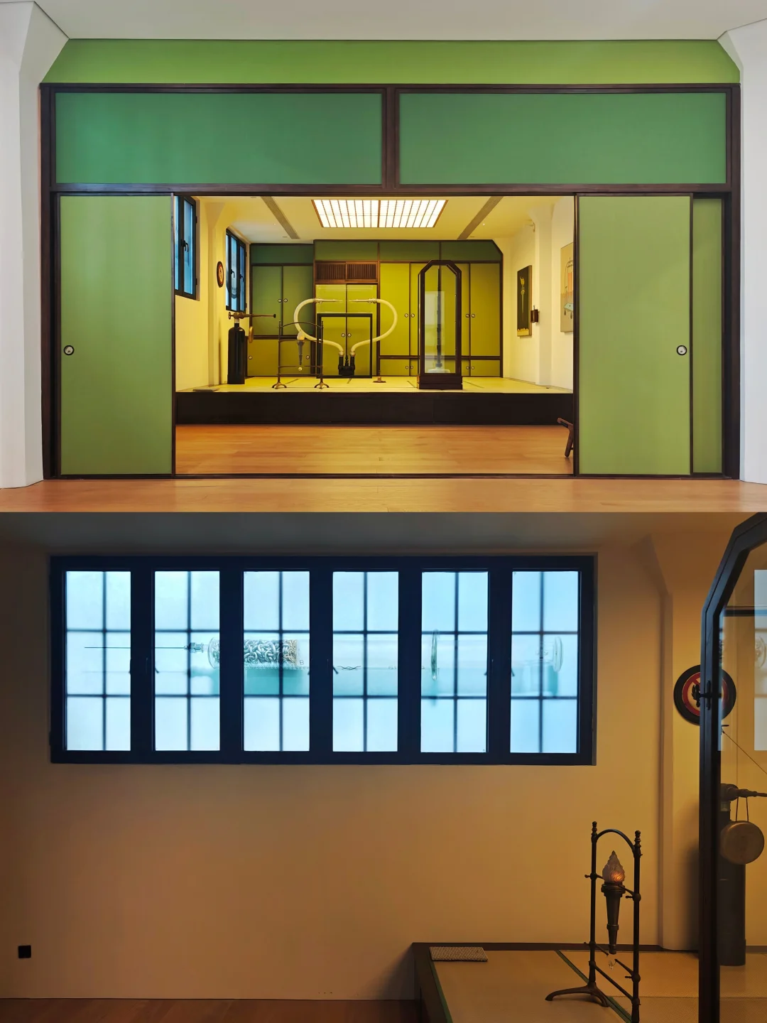🪟展厅玻璃窗上是2017年《“无题”系列》摄影作品,借哥特式玻璃彩窗结构过滤自然光,将绿色的榻榻米空间转化为冥想致幻的旷野密室。