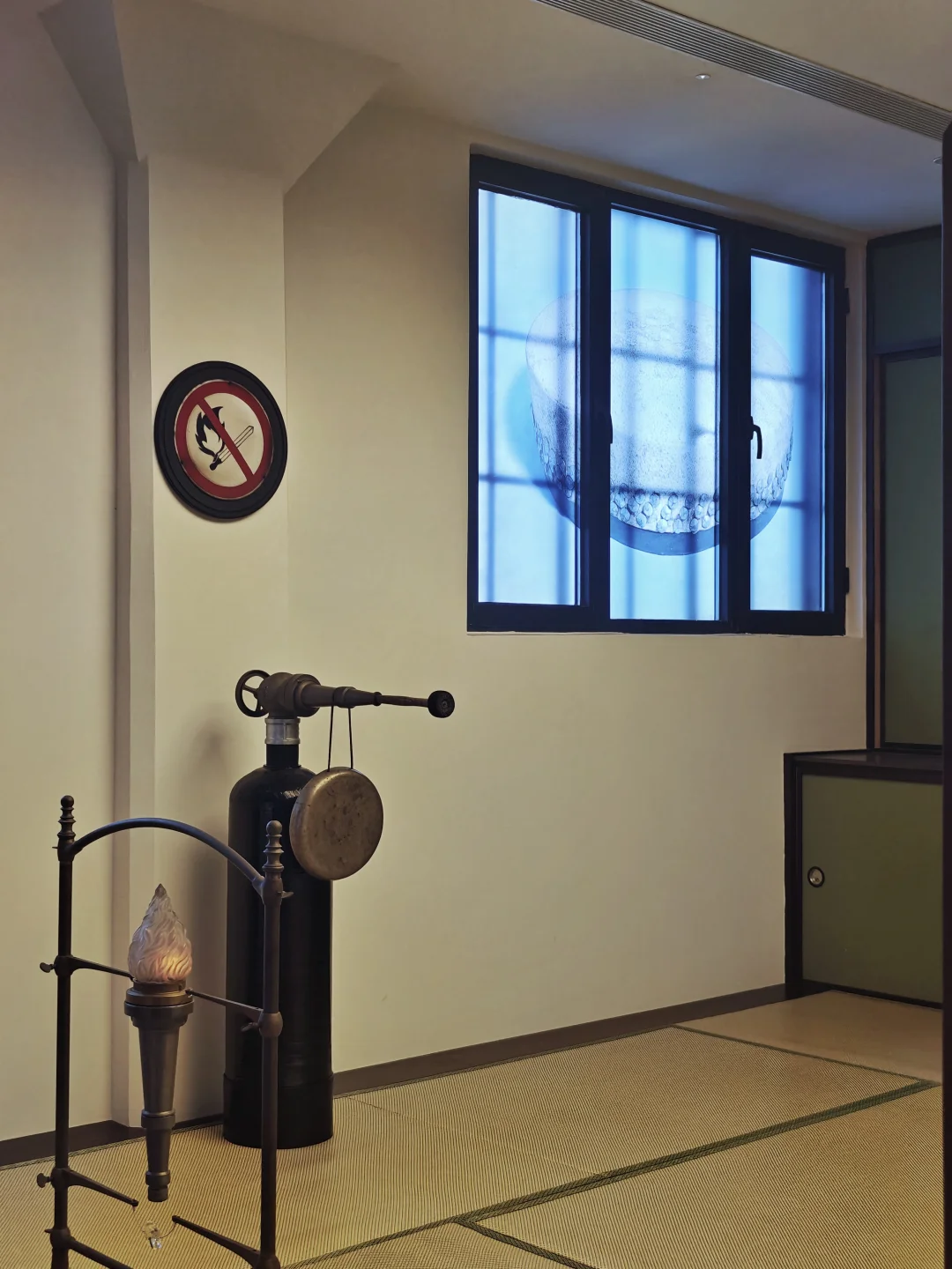 🔧捕获时空信号的工具——不同时代的“物”:民国铜鞋架、梳洗盆、灯罩、机械时钟,清末消防水枪、藏式法锣,以及被填充了颜料的注射器等等。